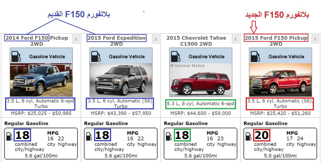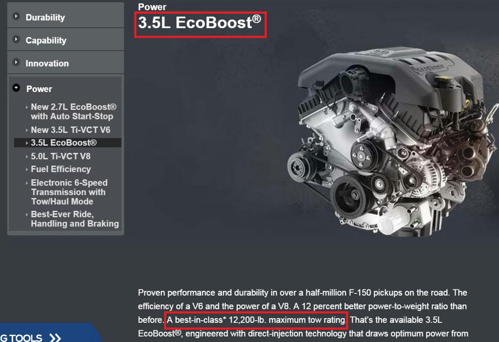 لو تلاحظ الاحصائيات إلّي على الجدول هي للجيل الحالي من المحرك المتوفر على F150 ولو تلاحظ فإن عزم المحرك أفضل من أكبر محركات الرام والتوندرا V8 وأقل من محرك السييرا والسلفرادو الكبير V8 سعة 6.2 لتر ،، مع ذلك هذا المحرك V6 يتفوق على جميع محركات المنافسين V8 في السحب والتحميل واقتصاد الوقود .