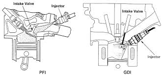 في محركات ( PFI ) فان طبقة سائلة من الوقود تتكون وتنشأ في منطقة ادخال الهواء وهذا من شانه تقليل عملية تبخير الوقود وخصوصا عند تشغيل المحرك وهو بارد , ولهذا يضطر الكمبيوتر الى زيادة نسبة الخليط لتعديل نسبة التكافؤ للخليط , وهذا بدوره سوف يزيد من نسبة انبعاثات الهيدرو كربونات ,, هذه الحالة قد تم تلافيها في محركات ( GDI ) لان حقن الوقود يتم بشكل مباشر داخل اسطوانات المحرك