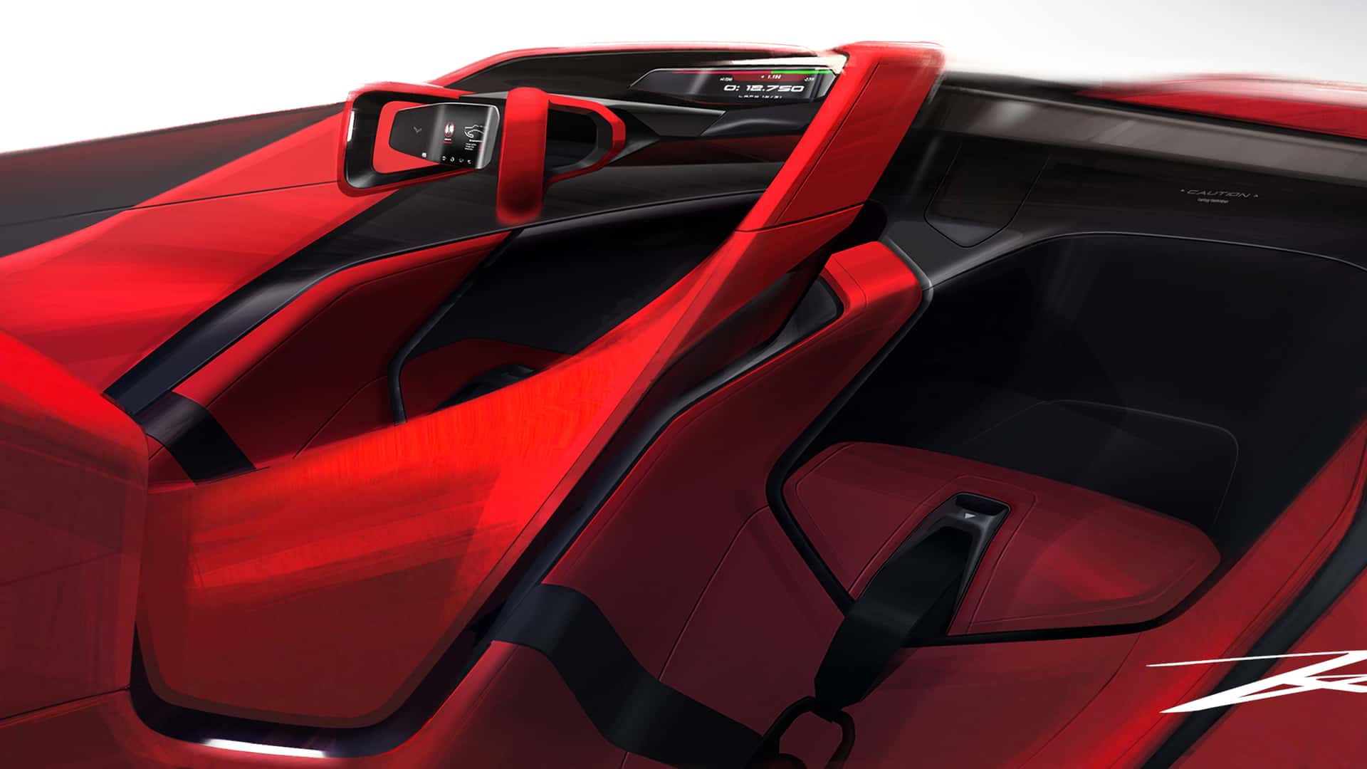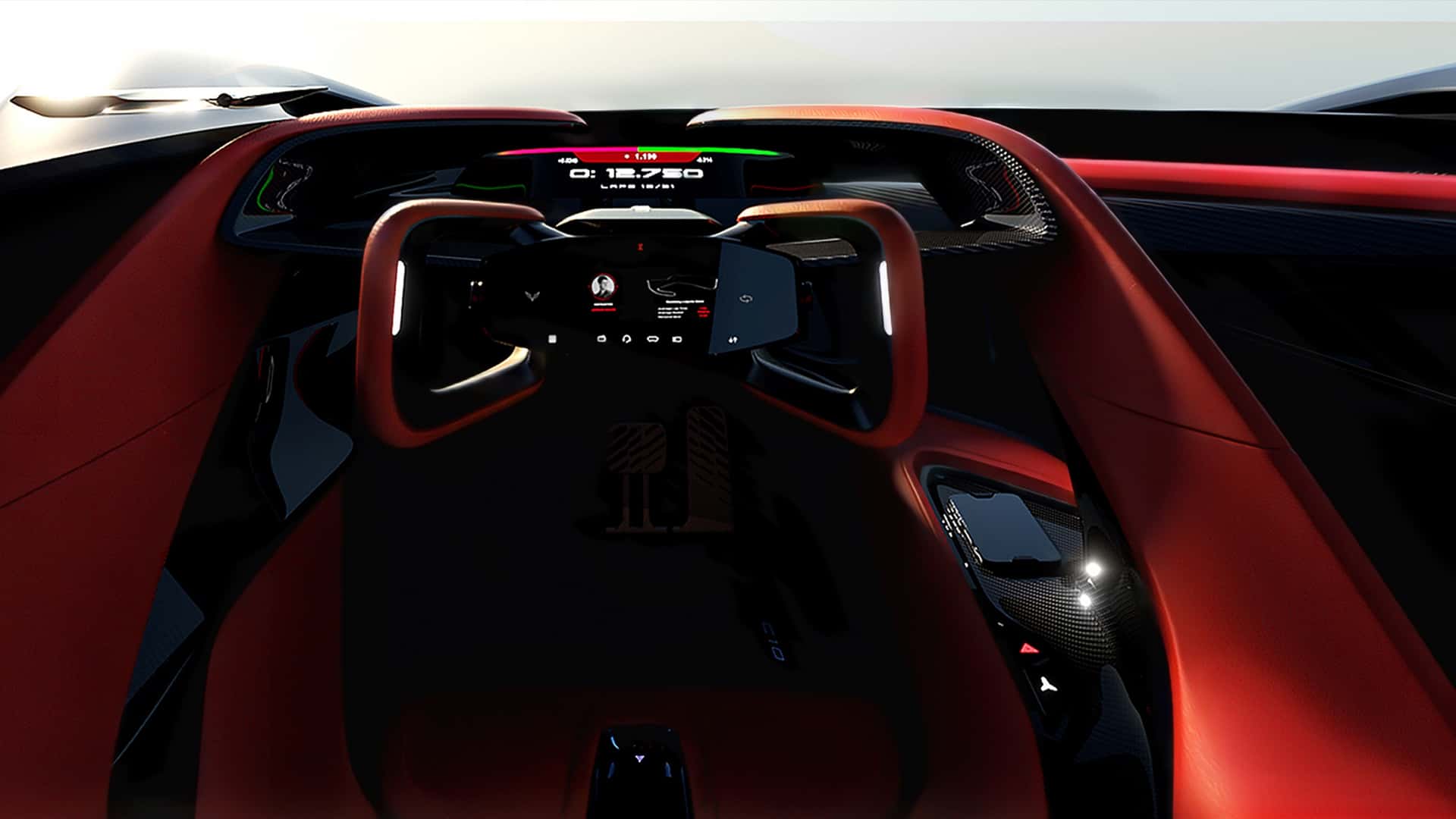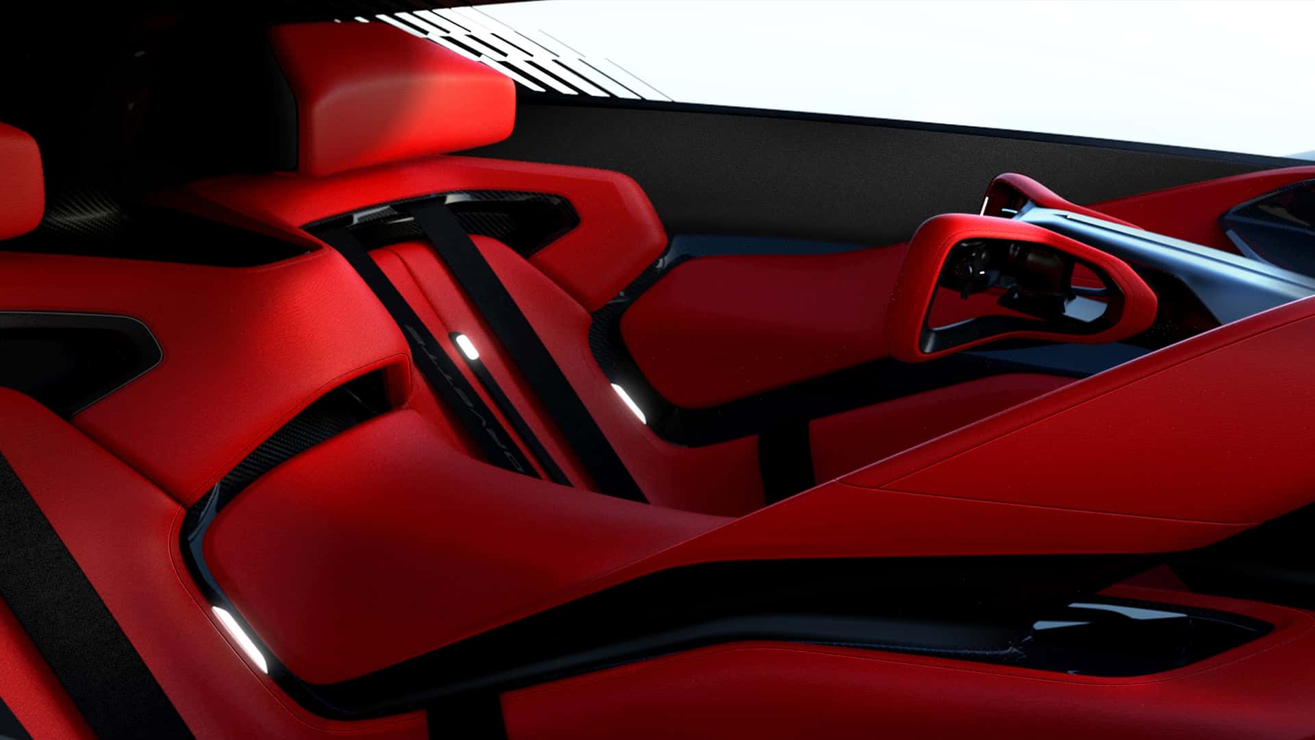 تتميز المقصورة الداخلية البسيطة بلونها الأحمر الزاهي، مع تصميم قمرة قيادة مُركّز بشكل رائع على السائق. يبدو الأمر كما لو أن المصممين قد حسّنوا مقصورة سيارة C8 الحالية إلى أقصى حد، حيث يفصل جدار بين الراكبين. عجلة القيادة مزودة بمقبضين، مع شاشة في المنتصف وشاشة عرض أمامية. تشمل التقنيات الرائعة الأخرى فرامل هوائية خلفية وجناحًا خلفيًا نشطًا.