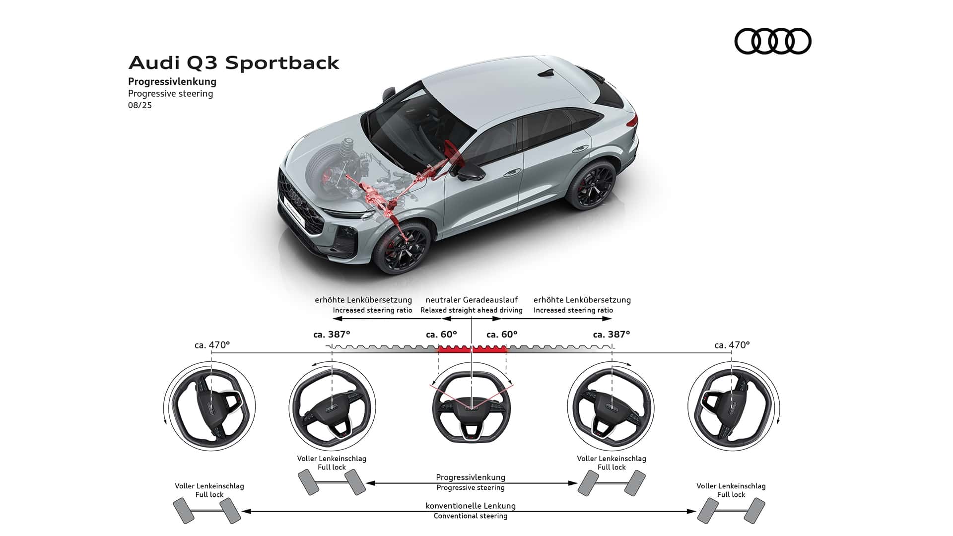تبلغ سعة صندوق الأمتعة ظ¤ظ¨ظ¨ لترًا (مثل سعة Q3) أو ظ،ظ¢ظ¨ظ© لترًا عند طي المقاعد (أقل بـ ظ،ظ*ظ* لتر). وتصل سعة السحب إلى ظ¢ظ،ظ*ظ* كجم.