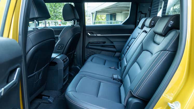 من الجانب، وبغض النظر عن صندوق الشحن الخلفي الضخم الذي يبلغ طوله 1.34 مترًا بسعة تزيد عن 1000 لتر (حمولة 500 كجم)، لا يزال بإمكاننا رؤية تصميم KGM المستقبلي الجديد الذي أحدث ضجة كبيرة عند الكشف عن أول سيارة توريس. صحيح أن هذه السيارة موسو تتمتع بمظهر أكثر قوة، مع ارتفاع أكبر عن الأرض (18 سم)، ورفارف أعرض، وأقواس عجلات مزودة بواقيات بلاستيكية، مما يعكس قدراتها العملية أو المخصصة للطرق الوعرة.