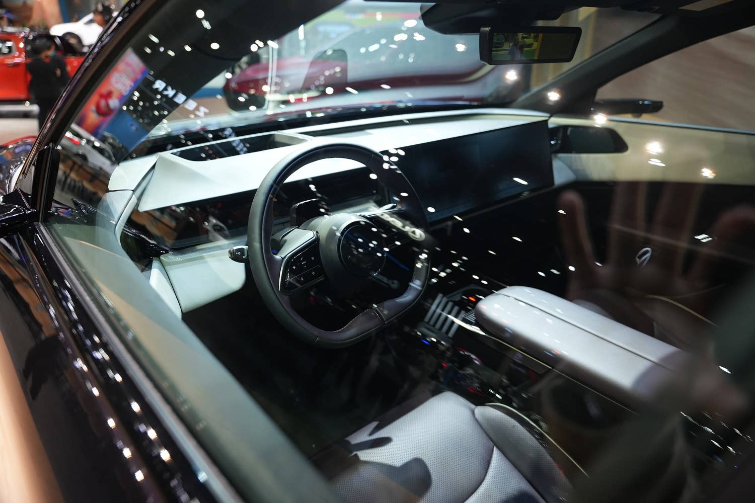 الخيارات كثيرة، ولكن بصرف النظر عن الألوان، تُعدّ الشاشة العنصر الأبرز الذي أثار بعض الجدل عندما كشفت مازدا عن إعلاناتها التشويقية الأولى. بحجمها الضخم البالغ 26 بوصة، تُغني مازدا عن اتباع التوجه السائد بتوفير شاشة منفصلة للراكب. حجمها كبير لدرجة أن كلاً من السائق والراكب يتشاركان الشاشة، وهذا ليس بالأمر المُحبّب لي.بينما أبرز التصميم الخارجي نقاط قوة مازدا، إلا أن التصميم الداخلي لم يُرق لي تمامًا. مع أنني أُقدّر عجلة القيادة والمواد التي تبدو فاخرة، إلا أن باقي المقصورة لا تُعبّر عن روح مازدا، أو على الأقل مازدا التي اعتدتُ عليها على مر السنين. قد يُعزى ذلك إلى أن CX-6e ليست مازدا بالمعنى الحرفي، لأنها، تمامًا مثل مازدا 6e الرائعة ، مبنية على أساس ديبال S07، وهي سيارة كهربائية بالكامل من شركة شانجان الصينية .