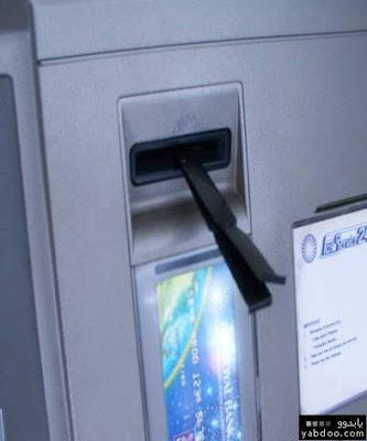الهروب وبحصوله على بطاقة الرجل المسكين ورقمه السري يترك اللص الموقع بعد أن سحب الحد الأعلى المسموح به لذلك اليوم من حساب الضحية: خمسة آلاف دولار. العملية من بدايتها إلى النهاية تمت في ست دقائق فقط! الفخ الفخ عبارة عن شريط مقصوص من فلم أشعة ومثني في المنتصف. فلم الأشعة هو المادة المفضلة لأن لونه الأسود مشابه للون فتحة إدخال البطاقة في جهاز الصرف الآلي فلا يرى. نصب الفخ يدخل الفخ في فتحة جهاز الصرف الآلي مع الانتباه لعدم ادخال كل الشريط. يتم ثني طرفي الشريط ويثبتان بإحكام بإدخالهما حول حواف الفتحة. ويمكن كذلك تثبيتهما بصمغ قوي.