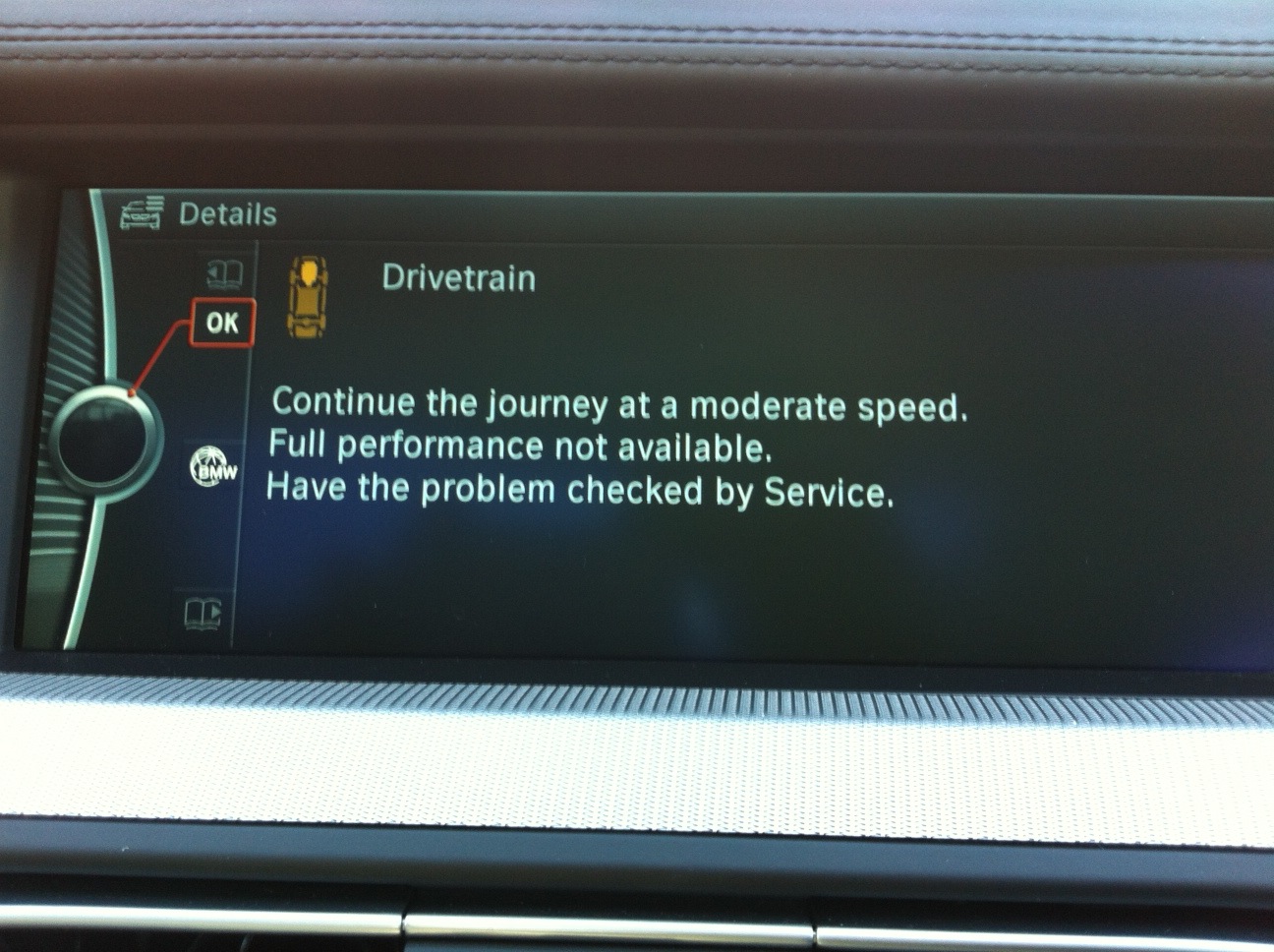فجاةً ظهرت لدي رساله كتب فيها DRIVETRAIN وقامت السيارة تقطع شوي وظهرت لدي صورة المحرك في لوحة العدادات