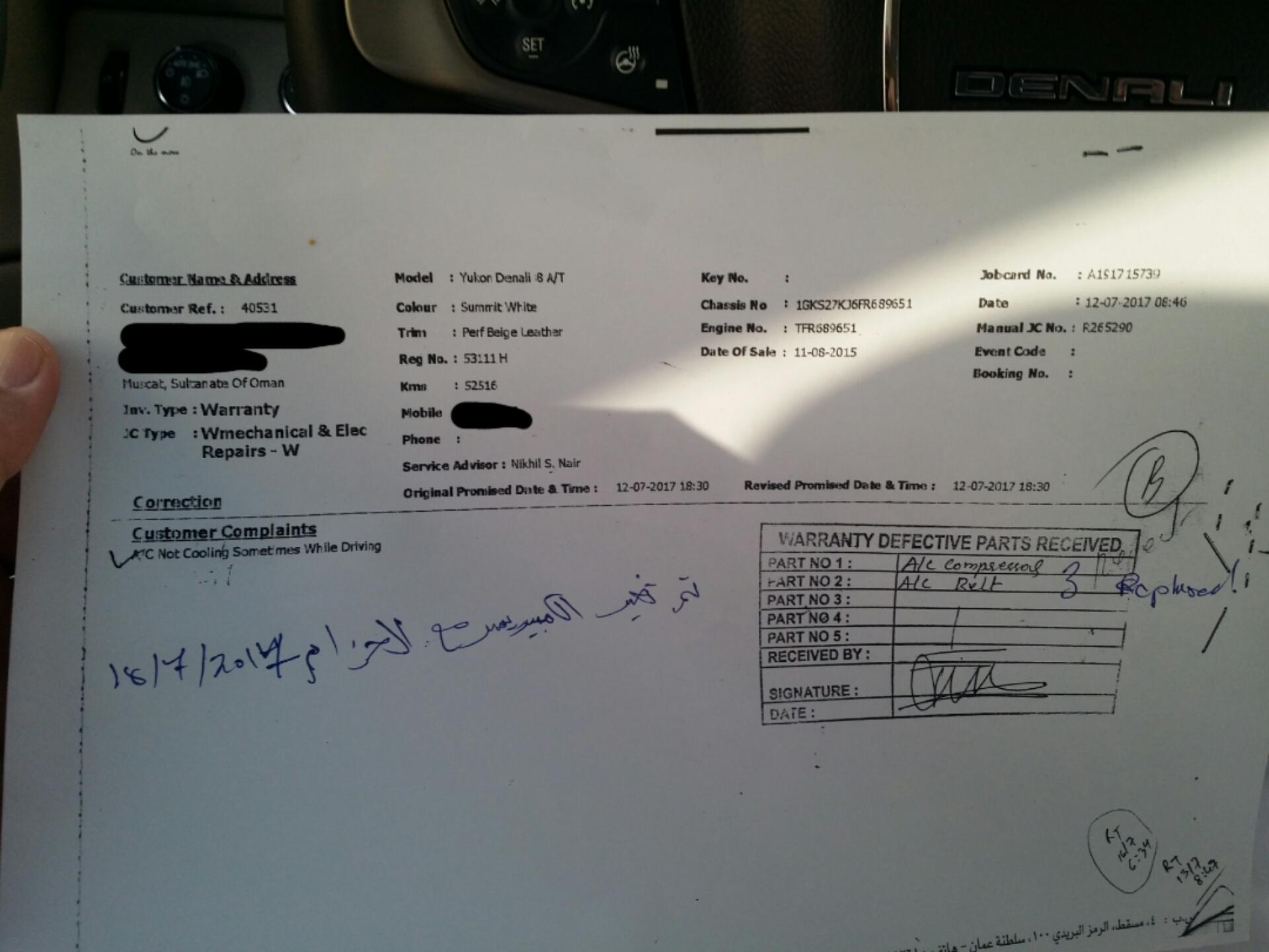 3. تعطل المكيف والسبب الكمبريسر بتاريخ 11/8/2017 كم 52516 وتم التغيير 6 أيام (بعد معاناه لين ما اكتشفوا العيب)