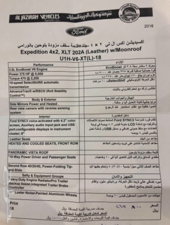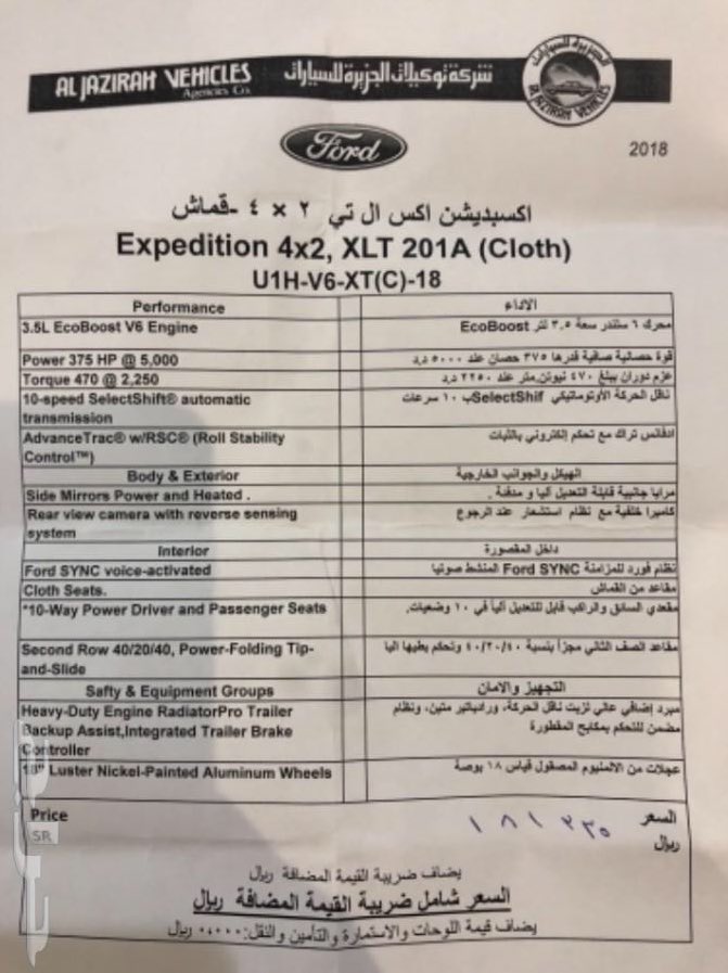 فئة XLT مع دبل السعر 196 ألف ريال شامل قيمة الضريبة المضافة