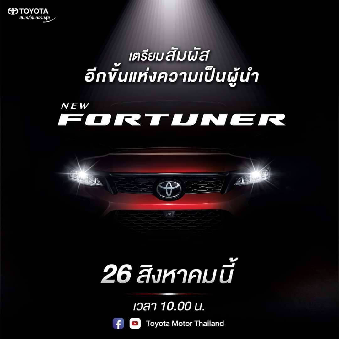 أعلنت رسميا شركة تويوتا اليابانية متعددة الجنسيات بفرعها بتايلاند موعد الكشف الرسمي لنسخة فورتشنر نسخة الكت الرياضي GR بتاريخ 26 اغسطس الحدث المهم للكشف و هو موافقة شركة تويوتا لإضافة تقنية مراقبة النقطة العمياء (BSM) والكاميرات المحيطية وكذلك سيتم إضافة تقنية تنبيه حركة المرور من الخلف RCTA هذه المعلومات المتاحة حتى موعد الاطلاق الرسمي
