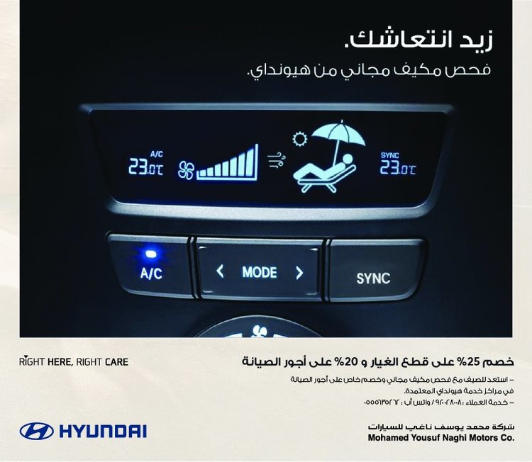 كما اعلنت الشركة عن عروض على التكييف من خلال فحص مجاني للتكييف لفترة محدودة من 26 ابريل الى 6 مايو 2019.