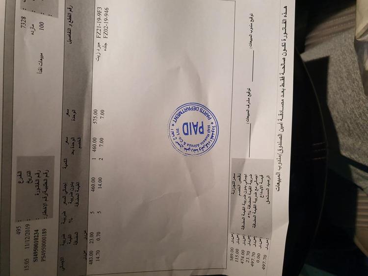 ذهبت للوكالة واشتريته بعد الخصم شامل الضريبة 483 مع جلده عدد (2) بسعر 14.7 شامل الضريبة.