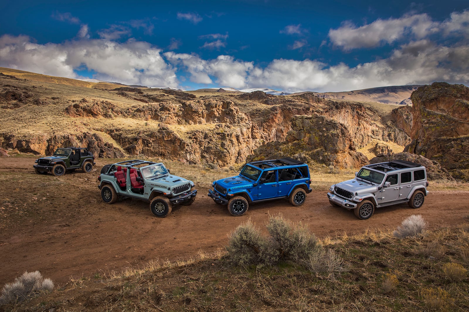 وتتوفر 4xe و روبيكون 392 فقط مع ناقل حركة أوتوماتيكي من 8 سرعات . في حين يمكن أيضًا استخدام محركات البنزين سعة 2.0 و 3.6 لتر مع ناقل حركة يدوي من 6 سرعات. ولا يزال يتوفر للسيارة نظام المحركات الهجين بمحرك سعة 2.0 لتر ينتج 375 حصان. بينما يولد المحرك بالشاحن التوربيني سعة 2.0 لتر بقوة 270 حصان. وينتج محرك بنتاستار V6 سعة 3.6 لتر 285 حصان، ويولد محرك V8 بسعة 6.4 لتر في روبيكون 392 قوة 470 حصان.