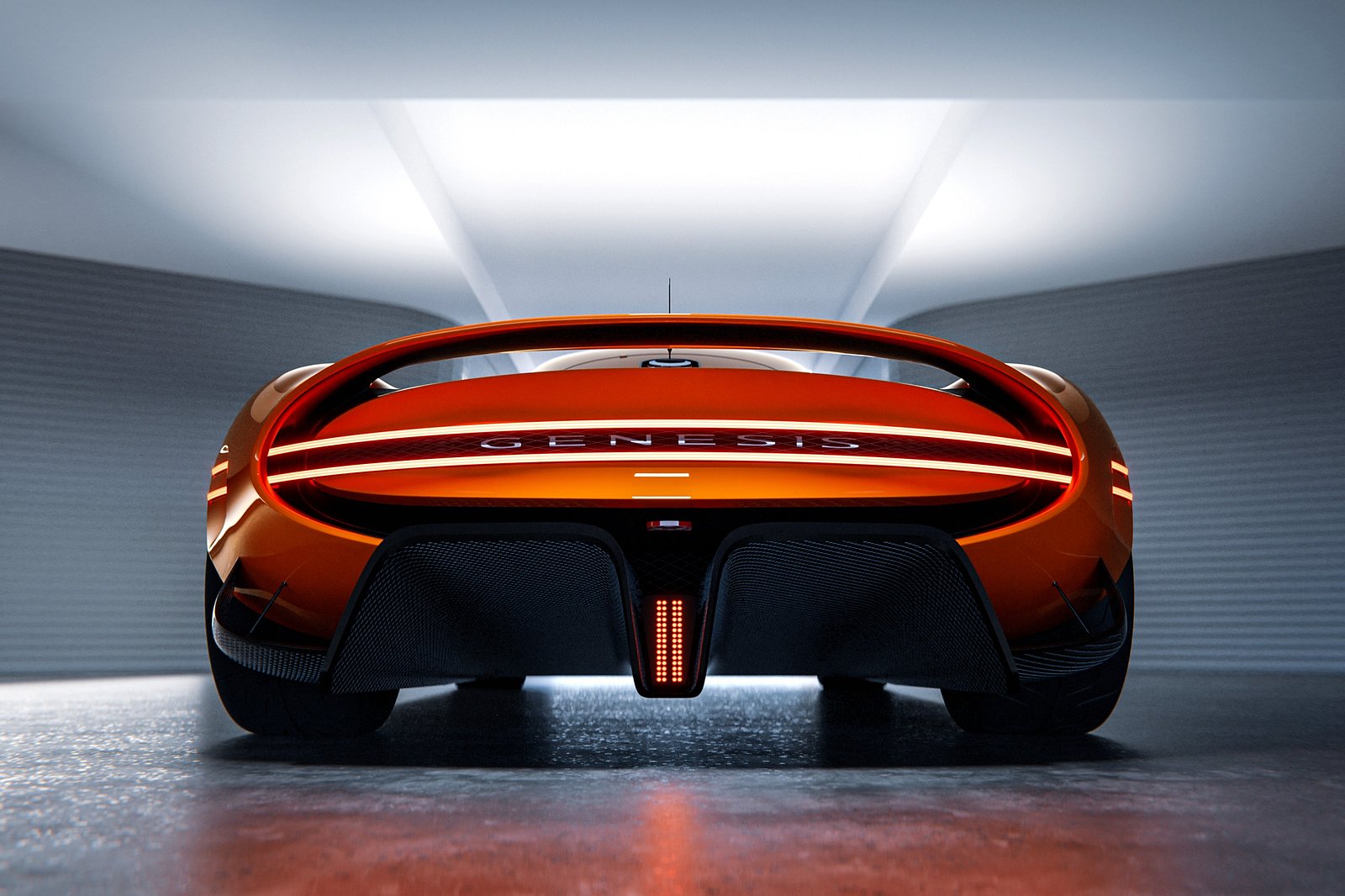 وتقول جينيسيس إن لون السيارة المميز هو لافا بوحي الروح الكورية لعلامة جينيسيس. وهو يشير إلى “براكين كوريا والعاطفة وحيوية ثقافة الأمة الكورية”. ويتميز الجزء الخلفي بتصميم بيضاوي. ووفقًا لجينيسيس، يوفر هيكل السيارة معامل سحب يبلغ 0.34 – وهو بعيد قليلاً عن قائمة معظم السيارات الديناميكية في العالم.