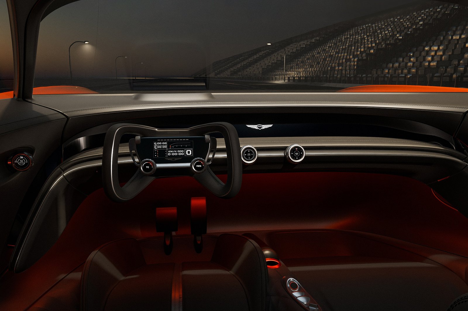وفي الداخل، تحتوي السيارة الخارقة على مقصورة بلمسات كربونية. وقدمت جينيسيس مقصورة قيادة تركز على جوانب السباق مع واجهة بانورامية رقمية للمعلومات ونظام مراقبة رقمي محيطي. كما أن لديها نظام توجيه سلكي يعد بمناورة دقيقة وحاسمة.