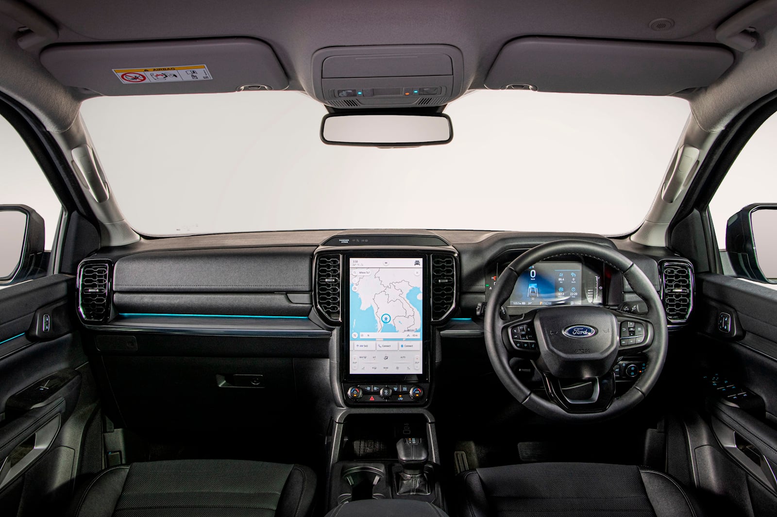 وفي الداخل ، توفر إيفرست مقصورة واسعة وحديثة مستوحاة من المنازل الحديثة. ويمكن ملاحظة ذلك في استخدام خامات راقية وإضاءة محيطة جذابة. وتشمل الميزات المتوفرة مقعد السائق بتعديل كهربائي في 10 اتجاهات ، وتدفئة وتهوية للمقعد الأمامي ، ومجموعة عدادات رقمية مقاس 12.4 بوصة. وينزلق الصف الثاني للأمام أكثر من ذي قبل ، مما يجعل الوصول إلى الصف الثالث أسهل. وتحتوي الفئات ذات المواصفات الأقل على لوحة عدادات رقمية مقاس 8 بوصات وشاشات تعمل باللمس مقاس 10.1 بوصة ، ولكن تتوفر أيضًا شاشة تعمل باللمس مقاس 12.1 بوصة.