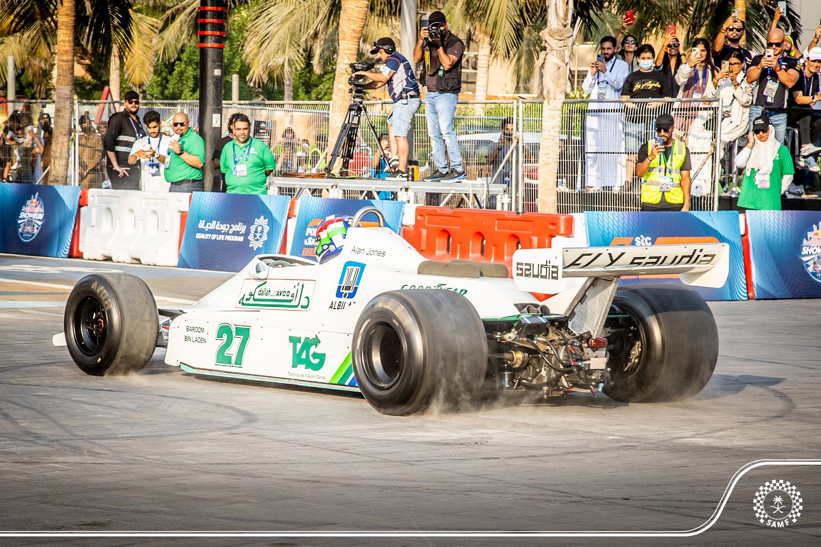السيارات – قام الأمير سعود بن جلوي بحضور إنطلاق العروض الحية لفريق ريد بُل ريسينغ بالواجهة البحرية بحضور الأمير خالد بن سلطان العبد الله الفيصل ، وذلك ضمن استعدادات الإتحاد السعودي للسيارات والدراجات النارية لتنظيم سباق فورمولا 1 بكورنيش جدة خلال الفترة من 3 إلى 5 ديسمبر المقبل .