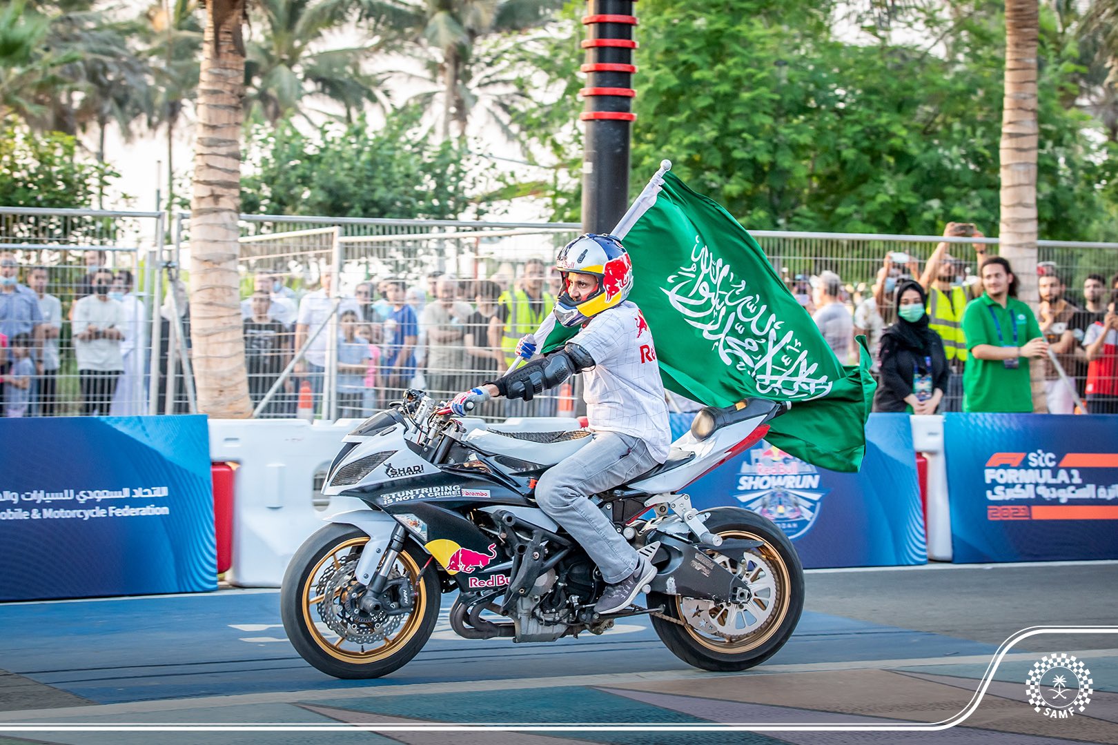 وجاء الاستعراض بشكل ممتع لفريق “ريد بُل” في كورنيش جدة بحضور عدد كبير من محبي رياضة المحركات. وكان الحدث قد تم بثه مباشرة على القنوات التلفزيونية مؤخراً وشمل قنوات MBC ACTION وSSC .