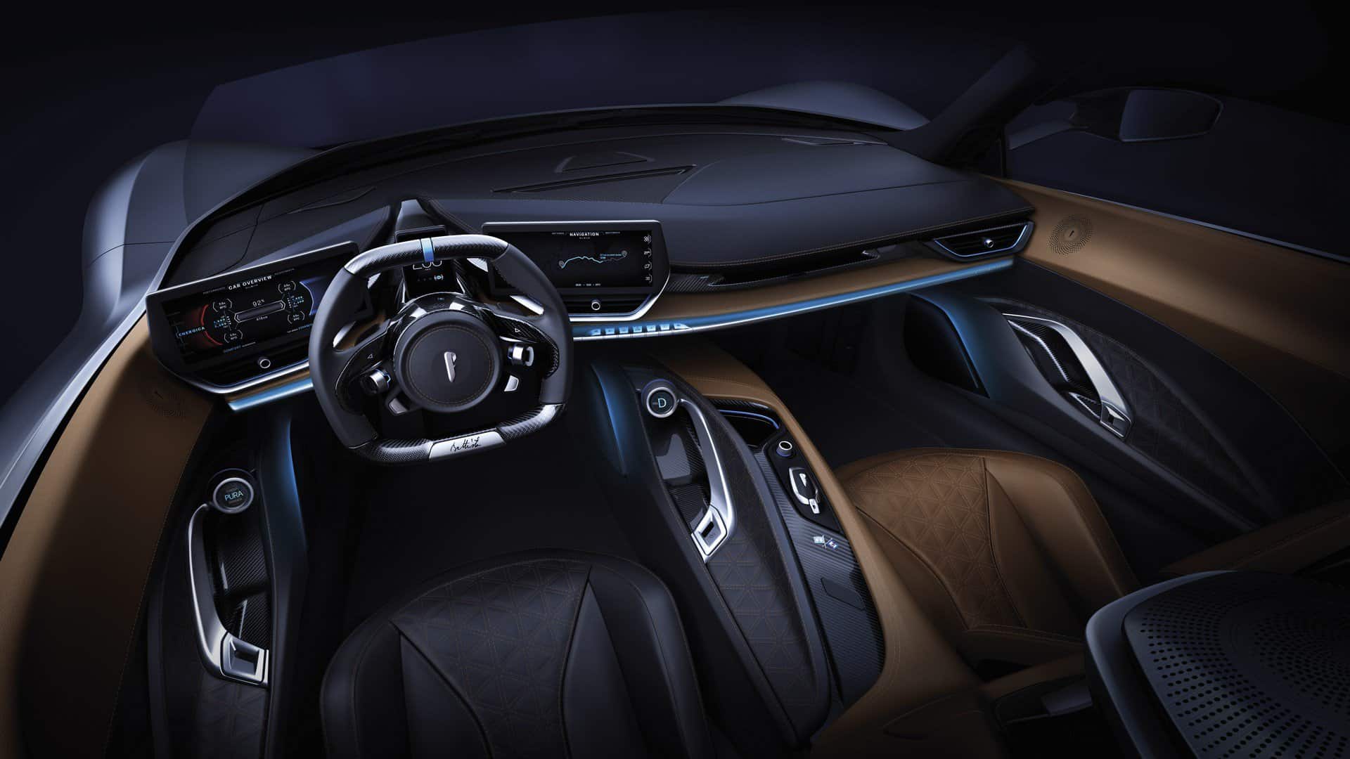 وتحتوي مقصورة القيادة التي تركز على السائق على عجلة قيادة من ألياف الكربون ومجموعة صغيرة من الأجهزة الرقمية. وعلى كلا الجانبين توجد شاشتان كبيرتان وتأتي الشاشة في اليسار لتركز على الأداء وفي اليمين تركز على المعلومات والترفيه والملاحة. ويستمر هذا الانقسام بين الأيسر والأيمن أكثر في أسفل الشاشتين, حيث توجد شاشات دائرية لناقل الحركة ومحدد اختيار الوضعيات الخاصة بالقيادة.
