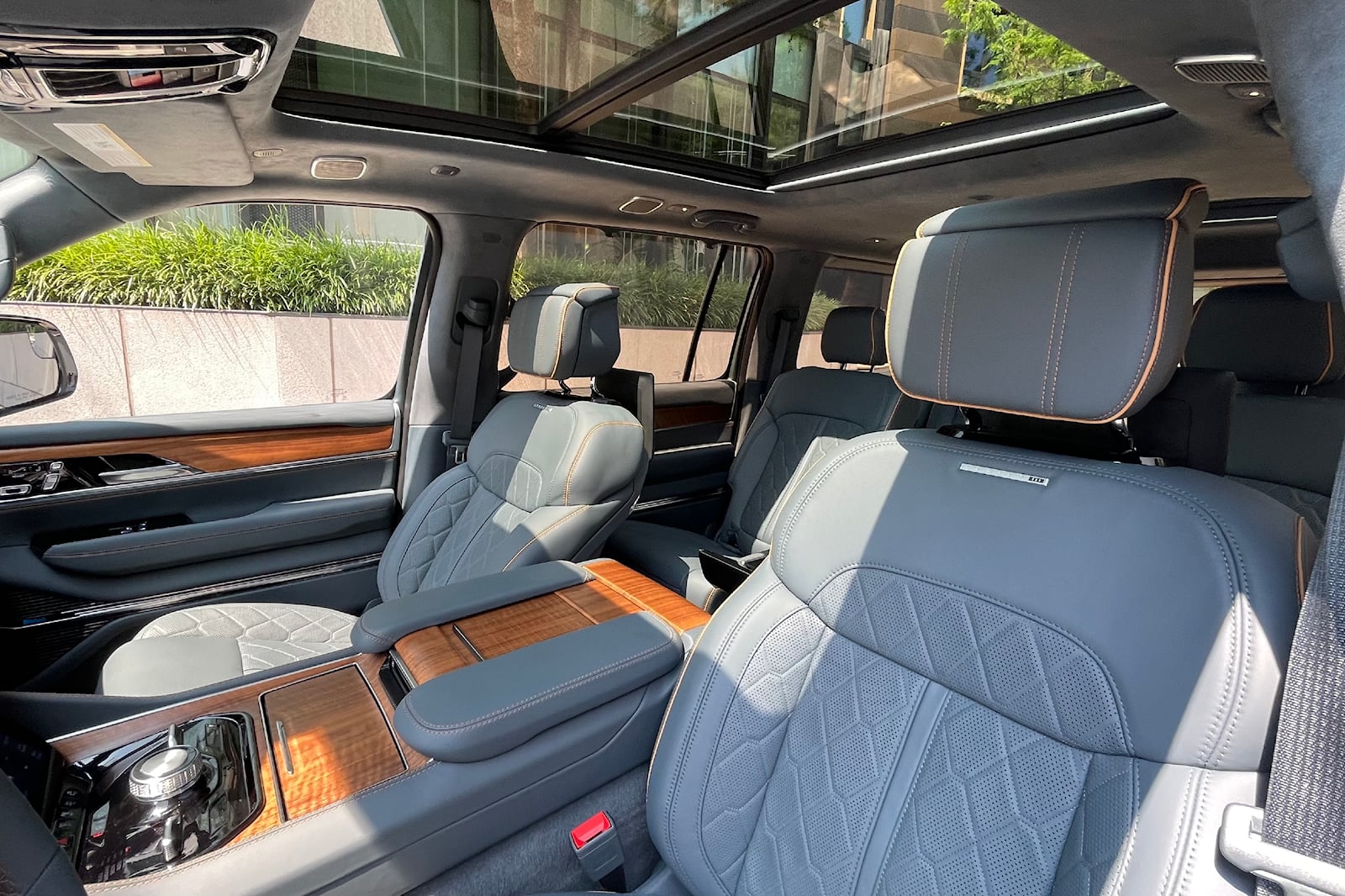 ويتوفر لطرازي جيب الأطول المصابيح الأمامية LED والمقاعد المكسوة بالجلد بصورة قياسية أيضًا . كما يتوفر خيارات من جلد نابا للمقاعد ، فيما تحصل نسخ L Series III الأعلي على جلد باليرومو. كما يتوفر نظام Uconnect 5 وأندرويد أوتو اللاسلكي وأبل كار بلاي. وهناك عدادات قياس 10.25 بوصة وشاشة رئيسية أفقية تعمل باللمس مقاس 10.1 بوصة. كما تأتي غراند واغونير إل بشاشات أكبر بحجم 12.3 و 12 بوصة على التوالى.