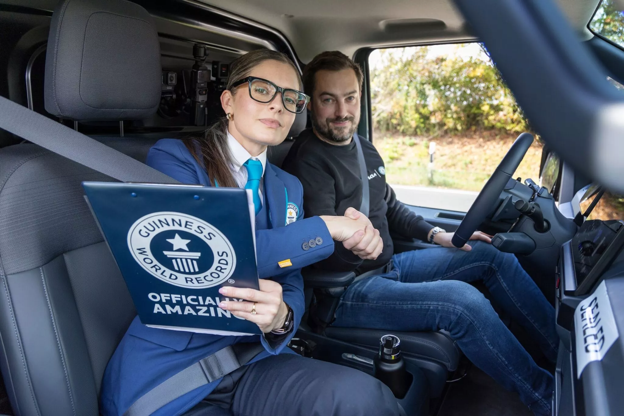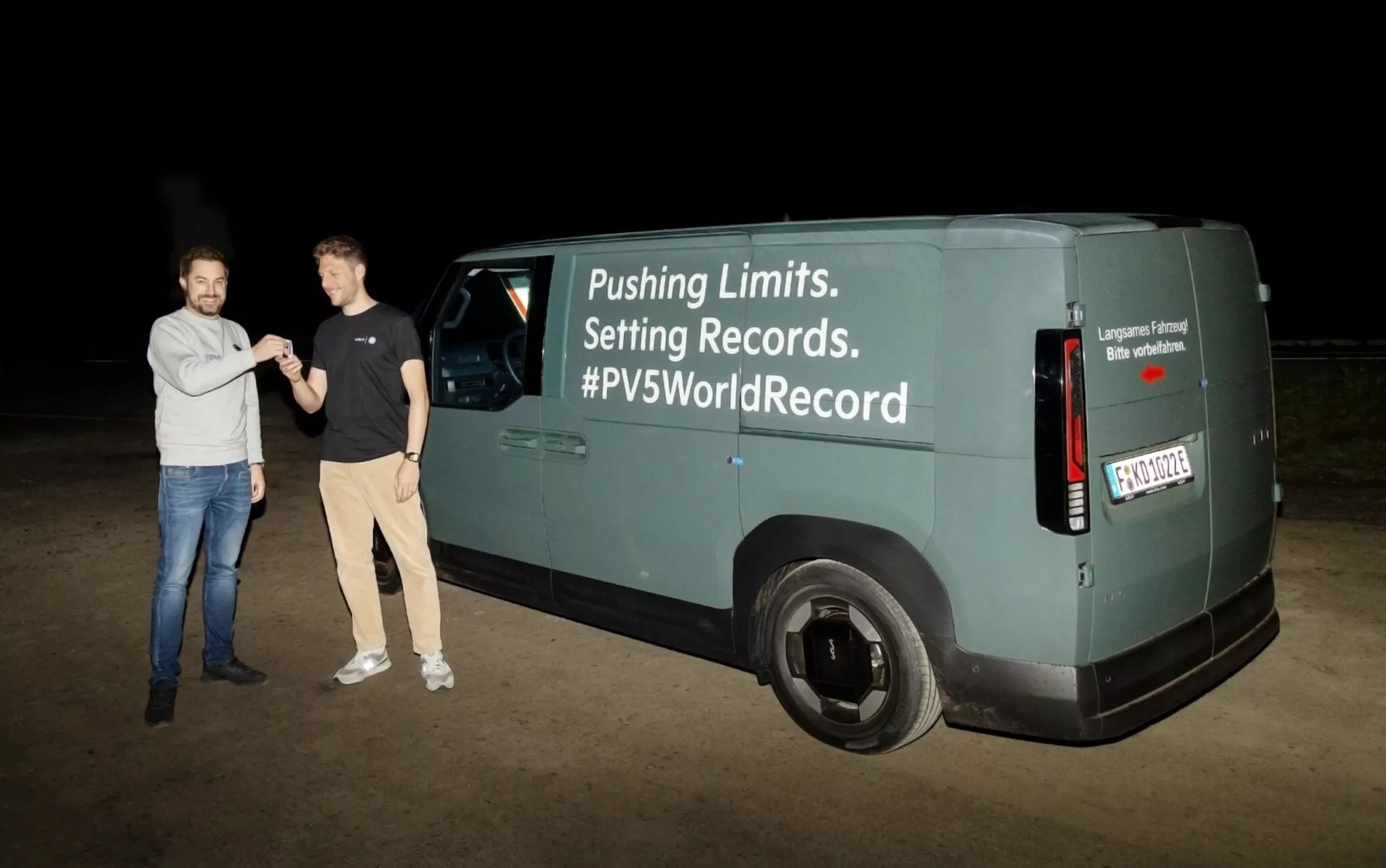 ويعتبر هذا إنجازًا رائعًا لسيارة فان يبلغ مداها الرسمي 415 كيلومترًا فقط. ويكاد يكون الأمر معجزة عندما تعلم أنه تم تحقيقه أثناء حمل أقصى حمولة لسيارة PV5، وهي 790 كجم. ولم يكن هذا الرقم القياسي اختبارًا محاكياً، بل كان اختبارًا حقيقيًا للتحمل، أُجري شمال فرانكفورت بألمانيا، في ظل نفس الظروف الخاصة بالنقل في المدن وخارجها التي قد تواجهها أي سيارة توصيل في يوم عمل طويل.