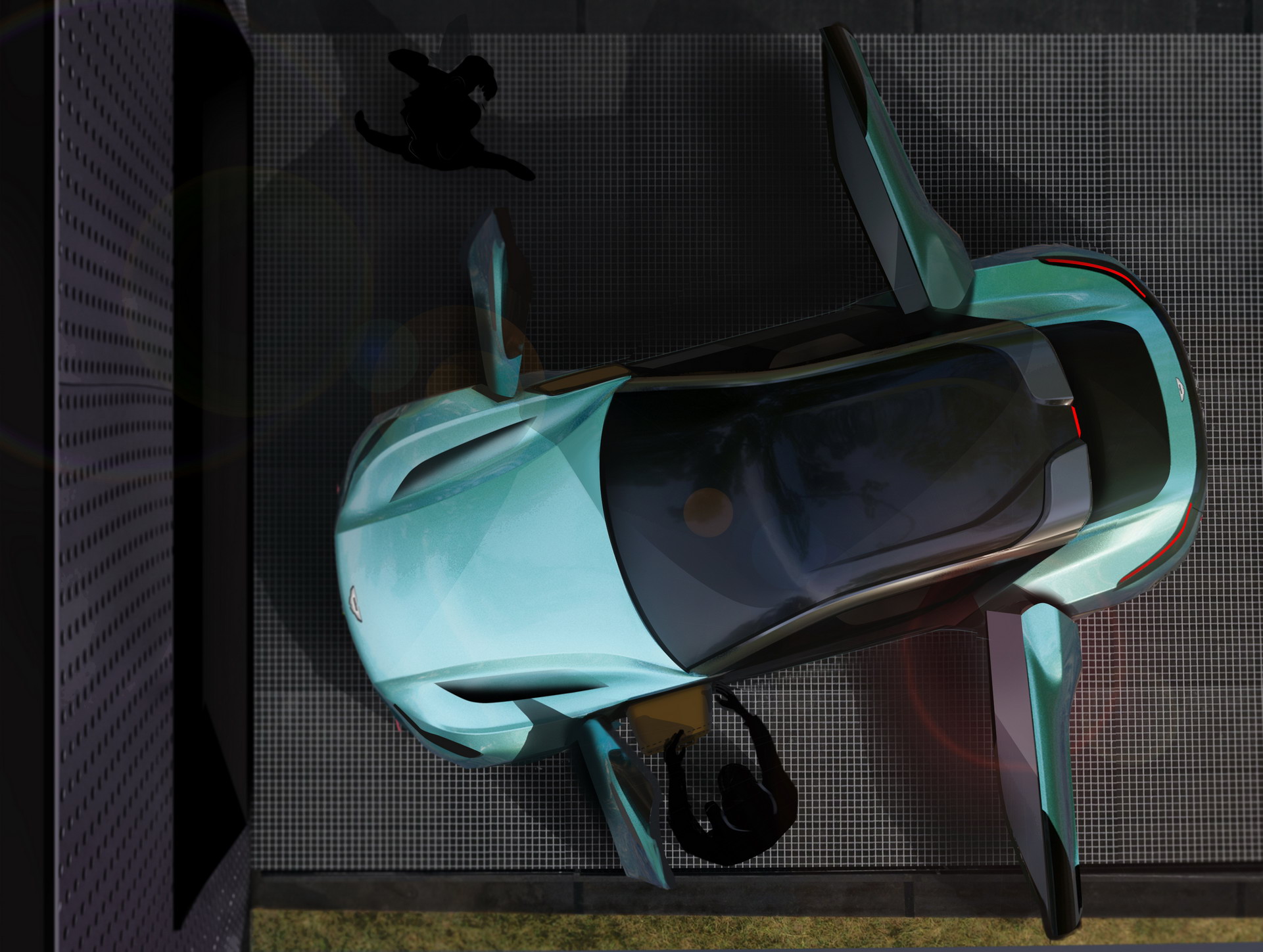 وقام المصمم الصيني جياكي هان بعمل هذه التصاميم أثناء دراسته في كلية ArtCenter للتصميم في كاليفورنيا. واليوم ، يعيش هان في لوس أنجلوس ، بعد أن انتقل إلى الولايات المتحدة لتحقيق حلمه في تصميم السيارات. وعلى حد تعبير هان ، تم تصميم الصور التخيلية لهذه السيارة الكهربائية لتوفير مزيد من الفرص لتصميم السيارات الجديدة الكهربائية.