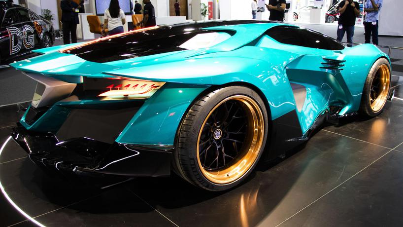 وأكد أن التصميم بدأ من خلال الأبواب وبدأ تطوير جسم السيارة من الأبواب التي ستفتح مثل جناحي التنين مع مقدمة السيارة التي تبدو مثل الأنياب ، وهناك فتحات هوائية على الجانبين ، وسقف منخفض ، ومساحة داخلية لشخصين فقط.