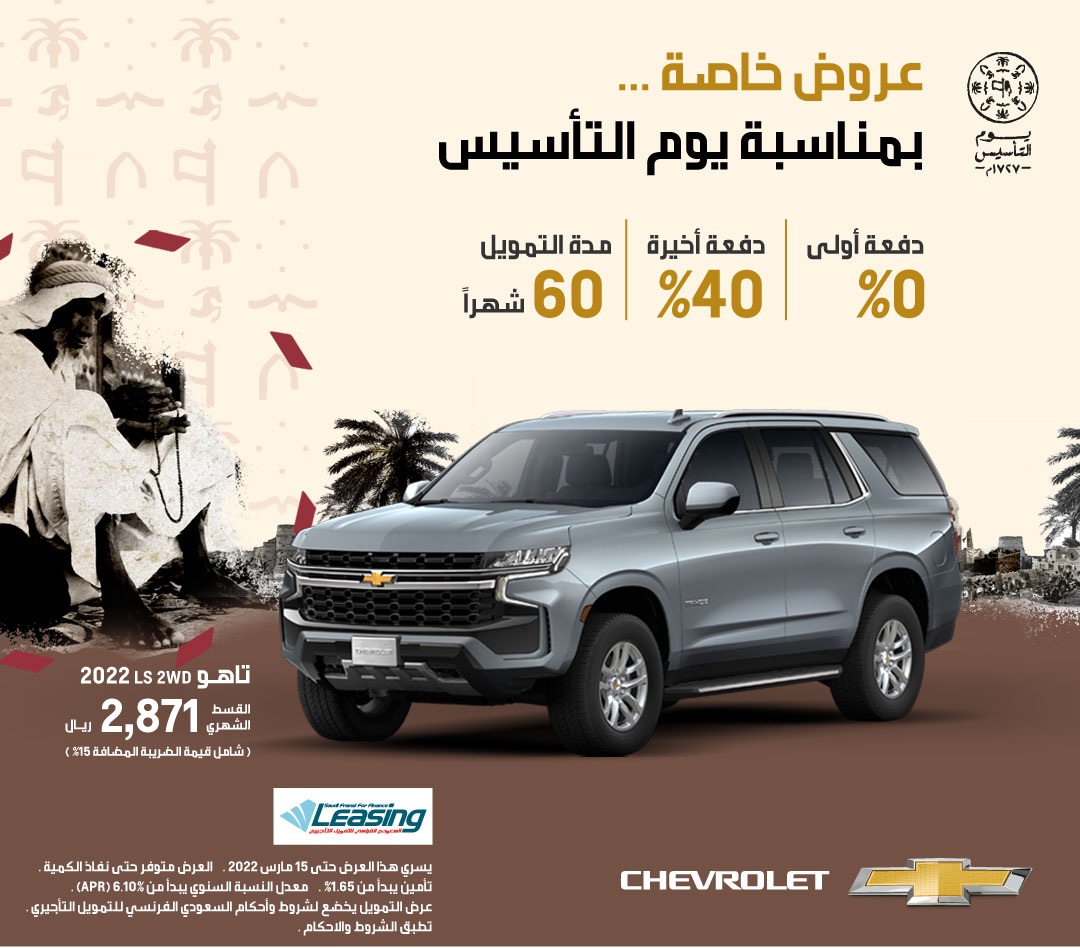 قسط شهري يبدأ من 2871 ريال لشفروليه تاهو 2022.