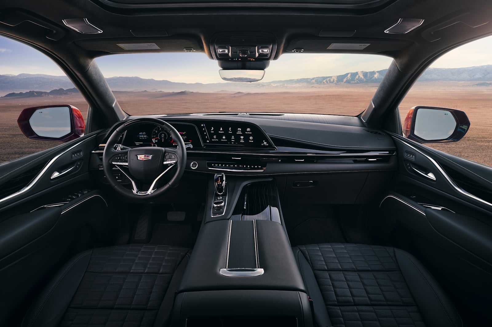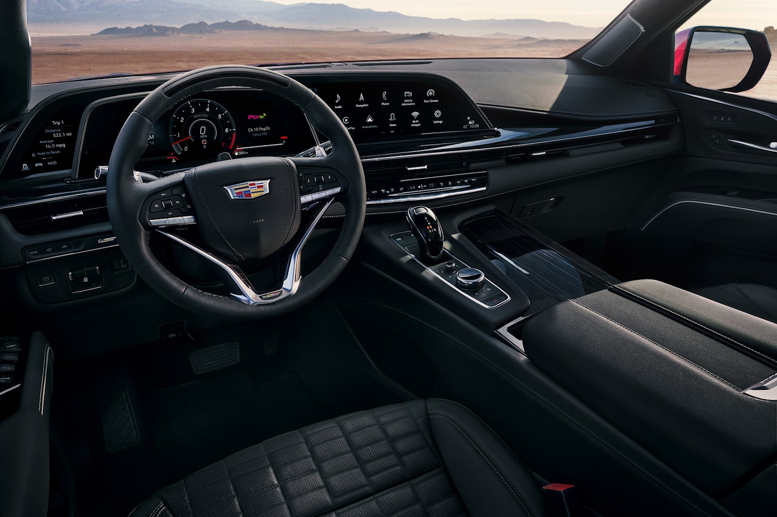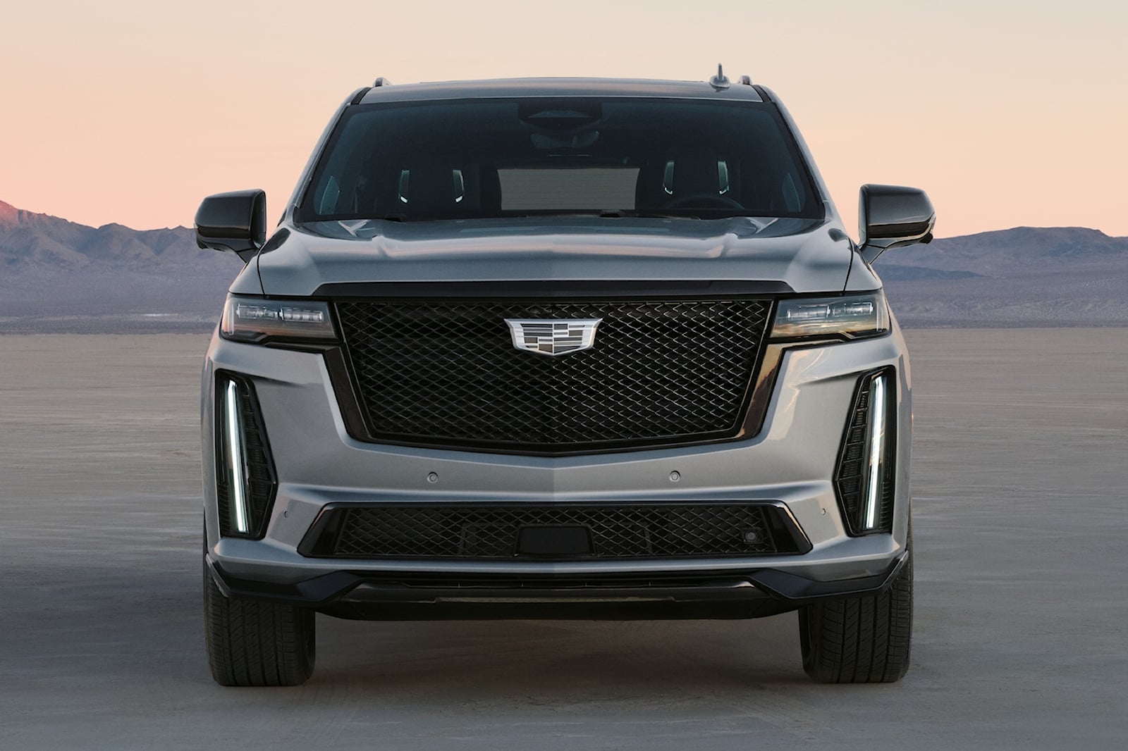 وتتمتع إسكاليد V بواجهة أمامية وخلفية فريدة وشبكة رياضية . وفي الخلف ، يتواجد منفذ العادم الرباعي. كما تعتمد على مجموعة من العجلات مقاس 22 بوصة والمكابح الكبيرة من نوع Edge Red Brembo في المقدمة. وتأتي إسكاليد- V بشكل قياسي مع الجلد لجميع الصفوف الثلاثة باللون الأسود أو البني الداكن مع تطعيمات من خشب الزيبرا. وتشمل المزايا الأخرى شاشة مقاس 14.2 بوصة للسائق وشاشة تعمل باللمس مقاس 16.9 بوصة مع Apple CarPlay اللاسلكي و Android Auto والملاحة والتحكم الصوتي.