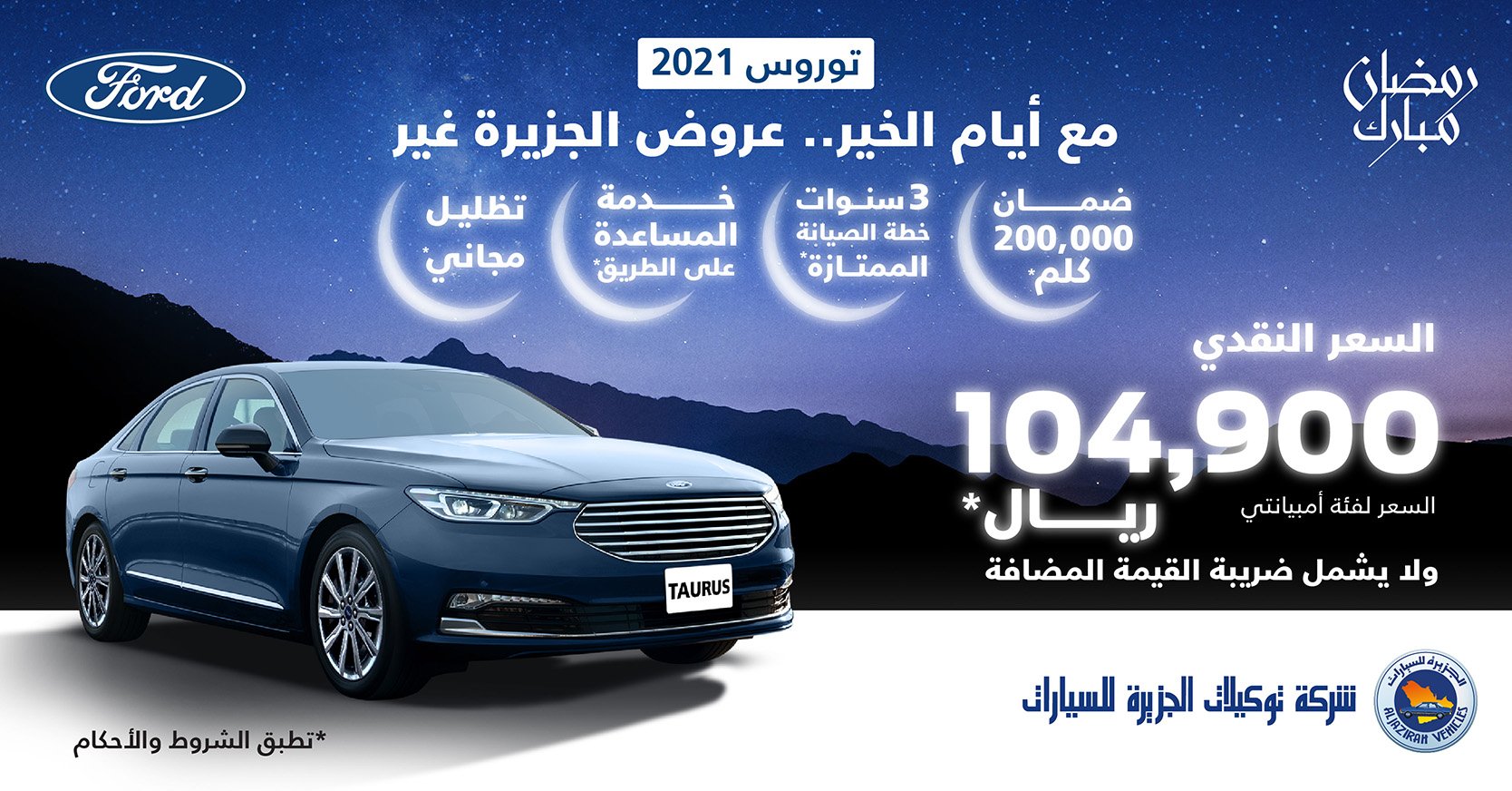 السيارات – أعلنت شركة توكيلات الجزيرة وكيل سيارات فورد في السعودية عن مد عروض شهر رمضان خلال الفترة الحالية على سيارات الشركة. وقالت الشركة أن العروض تشمل موديلات 2021 من :