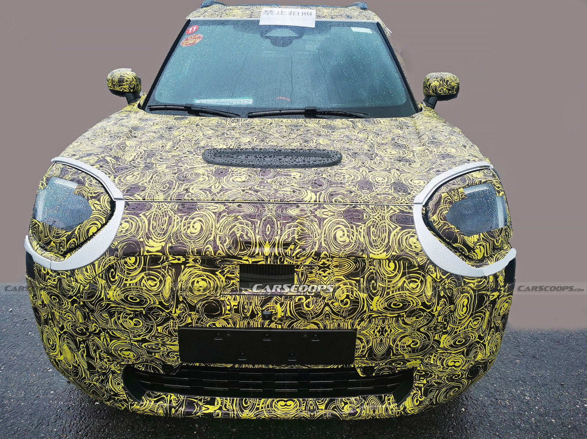 كما توفر لها عجلات أصغر مع خلوص أرضي محدود ومرايا مثبتة على الأبواب وسقف انسيابي. كما يوجد مدخل تهوية مزيف على غطاء المحرك ومنفذ شحن على الجزء الخلفي. وفي الداخل, تأتي بشاشة لمس معلومات وترفيه مستديرة كبيرة سيتم مشاركتها عبر مجموعة طرازات ميني المستقبلية.