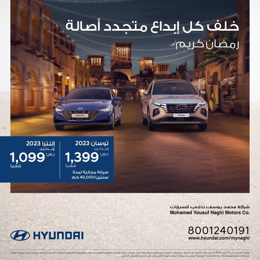 السيارات – أطلقت شركة محمد يوسف ناغي وكيل سيارات هيونداي في المنطقة الغربية والجنوبية بالسعودية عروضها الرمضانية.