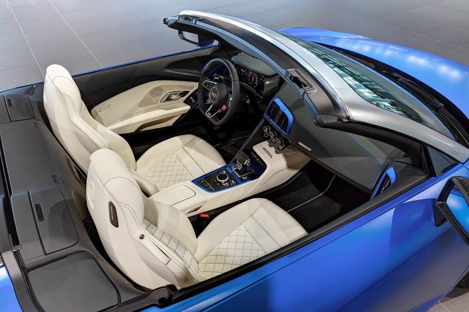 وتحمل السيارة تطعيمات جلدية داخلية مع مقاعد بيضاء ومدخلات من الياف الكربون وعناصر أخري ملونة. وربما لا تكون هذه السيارة أعلي نسخ أودي ، ولكنها تحمل محرك V10 سعة 5.2 لتر بقوة 540 حصان وتأتي مع ناقل حركة S Tronic ثنائي القابض من 7 سرعات ، مع قدرة علي التسارع حتي 100 كمساعة في 3.6 ثانية وقدرة علي الوصول الي سرعة قصوي 317 كمساعة .