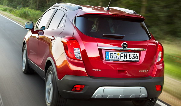 في الخلف، تتداخل خطوط موكا في تناغم فريد، لتنساب خطوط الجانبين وتصب فوق المصابيح الخلفية كلاسيكية التصميم، ويبرز الجناح العلوي الرياضي للسيارة، وكذلك باب التحميل الخلفي كبير الحجم الذي يحمل شعار أوبل بحجم كبير، والمصد الخلفي البارز مع المصابيح الإضافية في الأسفل، والارتفاع الملحوظ لموكا عن الطريق.