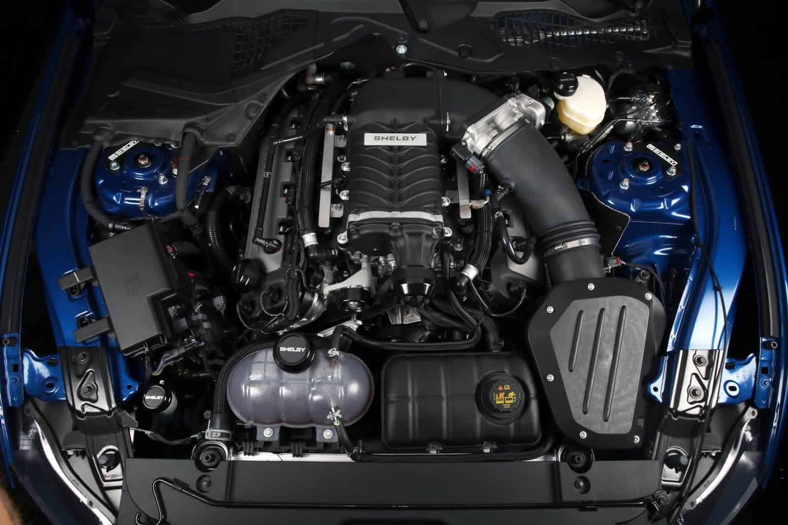 ولمن يريد المحرك 5 لتر بشاحن فائق ، فسيحصل علي قوة بواقع 670 حصان ، ومن حيث المظهر تأتي السيارة بخطوط لومانز مع شعار شيلبي مع تطوير نظام العادم من فورد بيرفورمانس وبورلا وبما يوفر الضوضاء المناسبة لعشاق السيارات ولهذه السيارة العضلية الأمريكية. وفي الداخل تتمتع السيارة بشعارات شيلبي وعدادات اضافية وغير ذلك تظل هي موستانج العادية . والشيء المثير بصورة خاصة شعار موستانج علي عجلة القيادة .