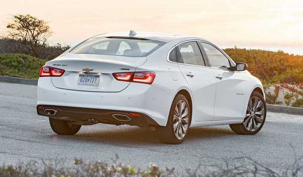 في الخلف، تحافظ ماليبو على هويتها بالمصابيح الخلفية التي يغلب عليها اللون الاحمر، إضافة إلى باب التحميل الخلفي كبير الحجم ذو الخطوط الانسيابية، والمصد الخلفي البارز مع فتحات التهوية الكبيرة على الجانبين التي تؤكد على قوة ماليبو.