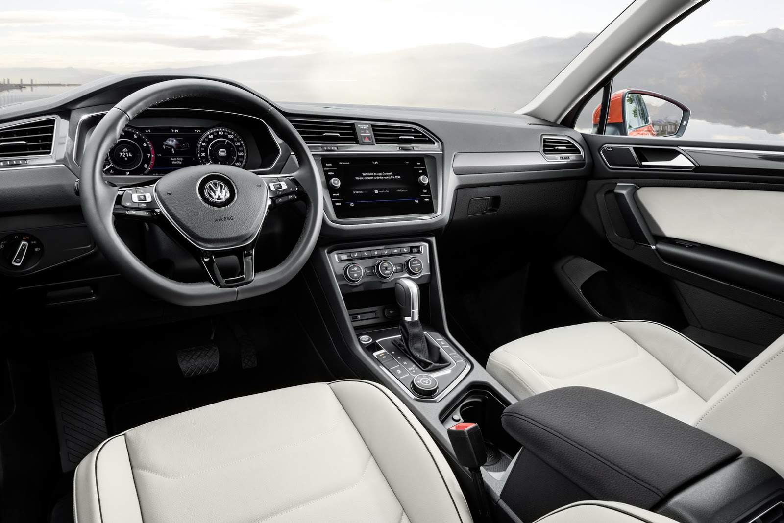 كما سوف تأتي إصدارات الدفع بالعجلات الأمامية من تيجوان بصورة قياسية كما هو الحال مع صف ثالث من المقاعد , بينما الإصدارات ذات الدفع الرباعي فستأتي كخيار. ومن أبرز ما تتميز به المقصورة فتحة سقف بانورامية، نظام تثبيت السرعة التكيفي، شاشة رصد البقع العمياء، نظام تحذير المغادرة من المسار، تحذير قبل الاصطدام الأمامي والكبح الذاتي في حالات الطوارئ.