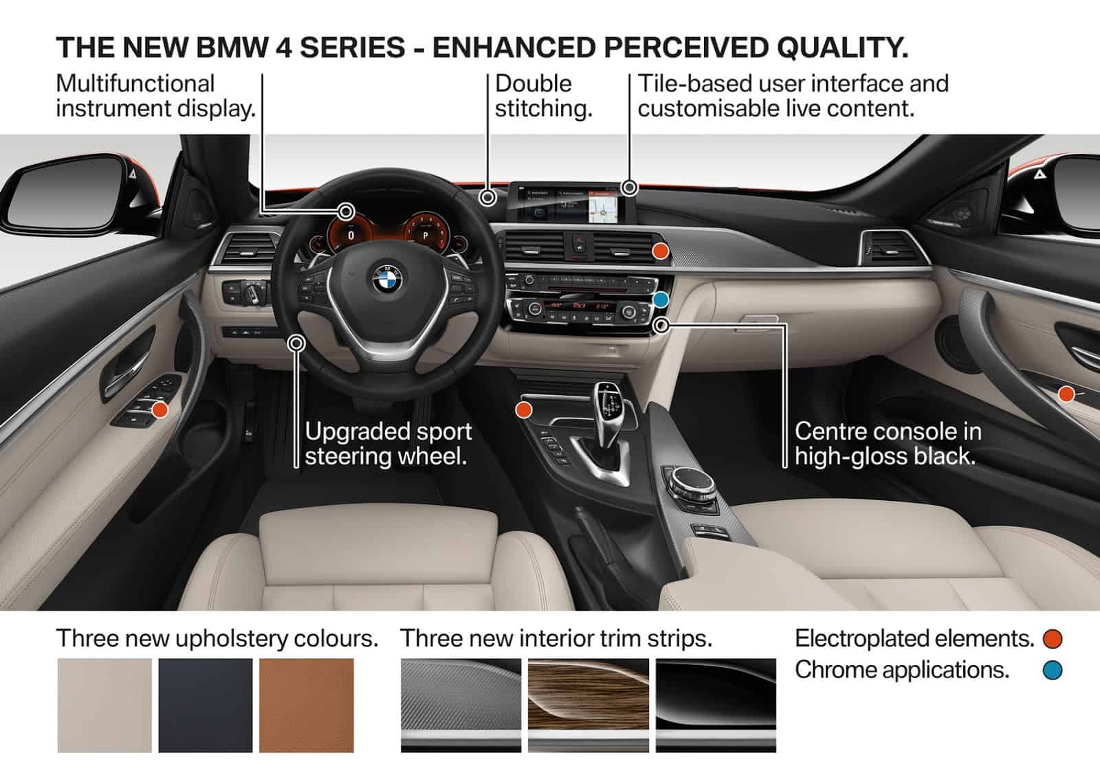 السيارات – بعد عامين من تقديم نسخ محسنة من موديلات الفئة الثالثة ، قررت BMW تكرار نفس الأمر مع الفئة الرابعة التي تشمل الفئة الرابعة كوبيه ببابين وجران كوبيه بخمس أبواب والنسخة المكشوفة بسقف صلب. وحملت السيارات المطورة تحديث في التصميم والشاسيه والمحركات. وتشمل تعديلات التصميم الخارجي مصابيح أمامية LED ومصابيح ضباب أمامية معدلة وتطوير المصابيح الخلفية.