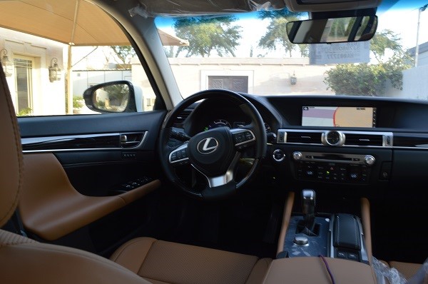 المقصورة الداخلية للفئة GS تتميز بالشاشة الكبيرة المشابهة لشاشة الطراز LS وهي بقياس 12.3 بوصة من خلال الشاشة يتم التحكم بمعظم خيارات السيارة مثل النظام الملاحي والهاتف الجوال والنظام الترفيهي كما يمكن استعراض حالة النظام الهجين ومعرفة استهلاك الوقود وبيانات الرحلة.