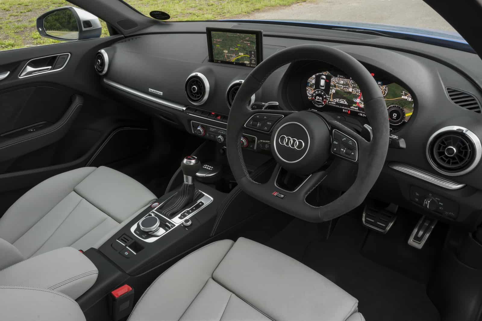 ومحرك السيارة TFSI سعة 2.5 لتر أخف في الوزن من السابق بواقع 26 كجم عن الموديل السابق وهو ما سيجعل السيارة افضل في التسارع وأسهل في التعامل وأكدت أودي أن RS3 قادرة علي التسارع حتى 100 كمساعة في 4.1 ثانية مع سرعة قصوى تبلغ 250 كمساعة ويمكن زيادة سرعة السيارة الي 280 كمساعة.