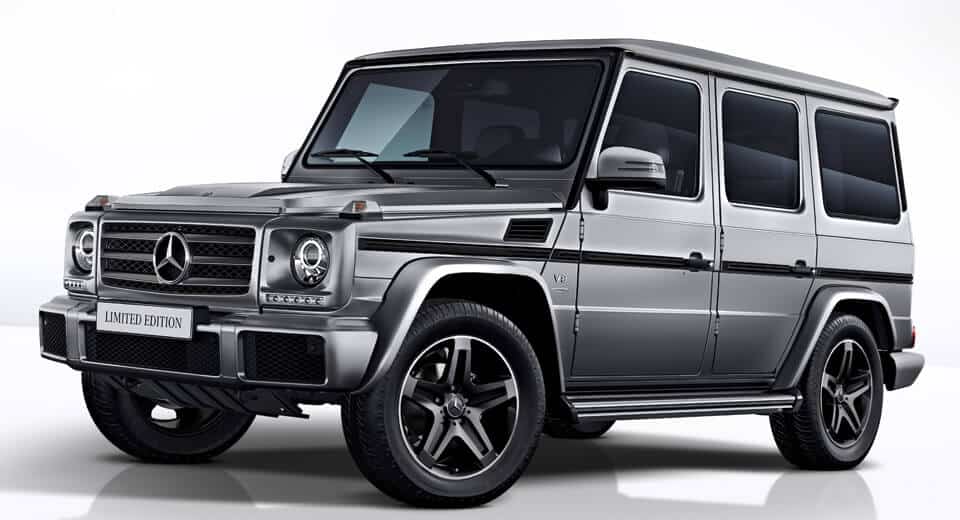 وتتوفر حالياً في أوروبا موديلات G350d و G350d Professional و G500 وتتميز الموديلات المحدودة الخاصة بطلاء مميز وتطعيمات وتجهيزات وشعارات خاصة. وبالنسبة لموديل G350d Limited Edition فسيحمل طلاء أسود ميتاليك Mocha مع تطعيمات الومنيوم مصقولة وباقة رياضية وعجلات ألومنيوم AMG 19 بوصة خماسية الأذرع ونوافذ مظللة وفتحة سقف كهربائية وتطعيمات كرومية وصلب .