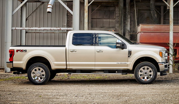 على الجانبين يظهر البدن المرتفع مع أقواس العجلات الضخمة التي تتسع للعجلات المعدنية الكبيرة المطلية بالكروم، والمرايا الجانبية الكبيرة لتكشف جانبي الشاحنة، والمقصورة المرتفعة مع الأعتاب الجانبية التي تساعدك على الصعود للمقصورة، مع الأبواب الكبيرة التي تسهل الوصول للمقصورة.