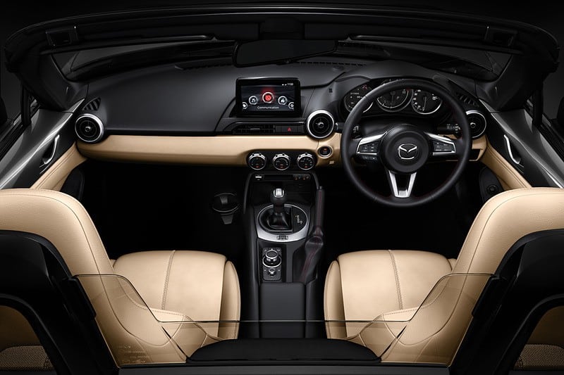 وقالت الشركة أن هناك تغيير مهم آخر يتمثل في أول عجلة قيادة تلسكوبية في مياتا فبالإضافة إلى الحركة العمودية لها بواقع 42 مم ، يمكن للسائق أن يجعل العجلة 30 مم أقرب إليه. وبالإضافة إلى ذلك ، يتوفر الإصدار بسقف مرن من MX-5 مع شاشة TFT ملونة موجودة في أقصى اليسار من ثلاثة عدادات بتصميم قريب من بورشة. كما تأتي بنظام i-Activsense القياسي الآن في جميع الطرازات ويتميز بفرملة الطوارئ التلقائية مع الكشف عن المشاة ، والتعرف على إشارات وعلامات المرور ، مع تحذير السائق.