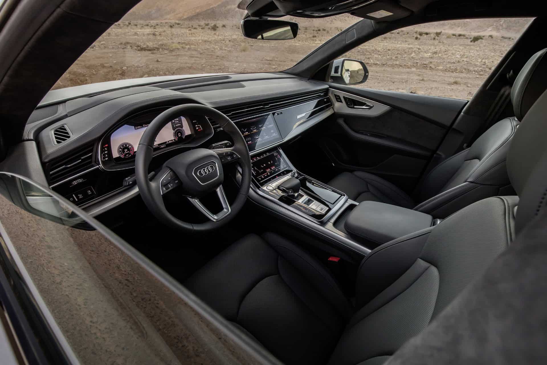 وفي الداخل ، تعتني Q8 بالركاب مع نظام الاستجابة السريعة MMI touch مع نظام المعلومات والترفيه بشاشة قياس 10.1 بوصة وشاشة للملاحة وشاشة التحكم بدرجة الحرارة قياس 8.6 بوصة. وسوف يتعرف عشاق سيارة A8 الجديدة على التصميم الداخلي على الفور لهذا الطراز مع توفر نظام المقصورة الافتراضية من الجيل الثاني بصورة قياسية، والذي يتميز بشاشة مقاس 12.3 بوصة. وتشمل الخيارات شاشة عرض كاملة الألوان في نسخة برستيج مع مشغل. Apple CarPlay و Android Auto بصورة قياسية.