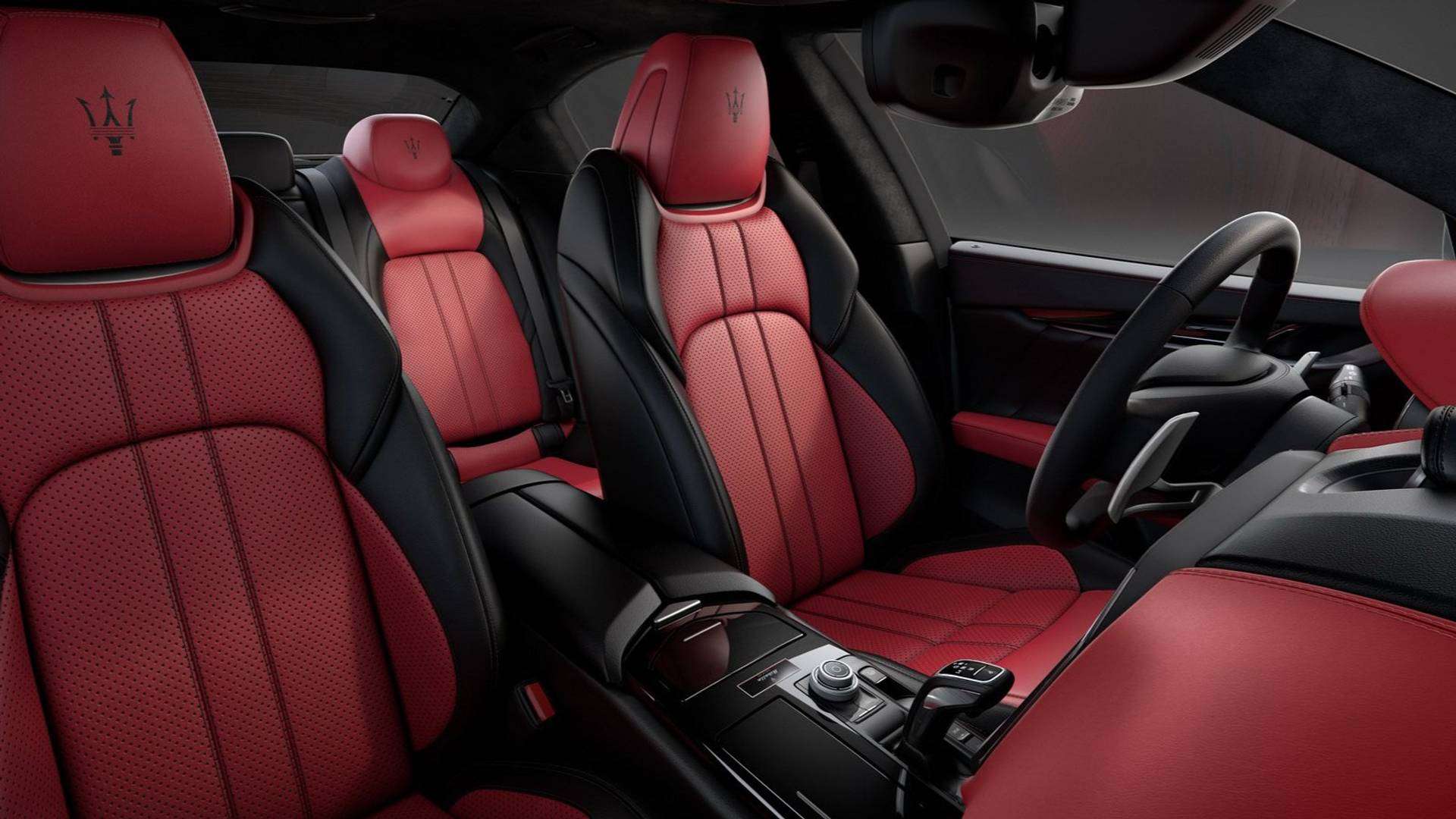 وفي الداخل ، يغطي الجلد باللون روبي المقاعد ، لوحة القيادة ، وألواح الأبواب وبالإضافة إلى ذلك ، هناك جلود سوداء مصبوغة لتحقيق بعض التباين في الألوان. ويتميز الكونسول الوسطي بمزيج من خشب البيانو الأسود ، وتوجد لوحة تحدد السيارة كإصدار ريبيللي ورقمها بين الـ200 نسخة المقرر تصنيعهم.