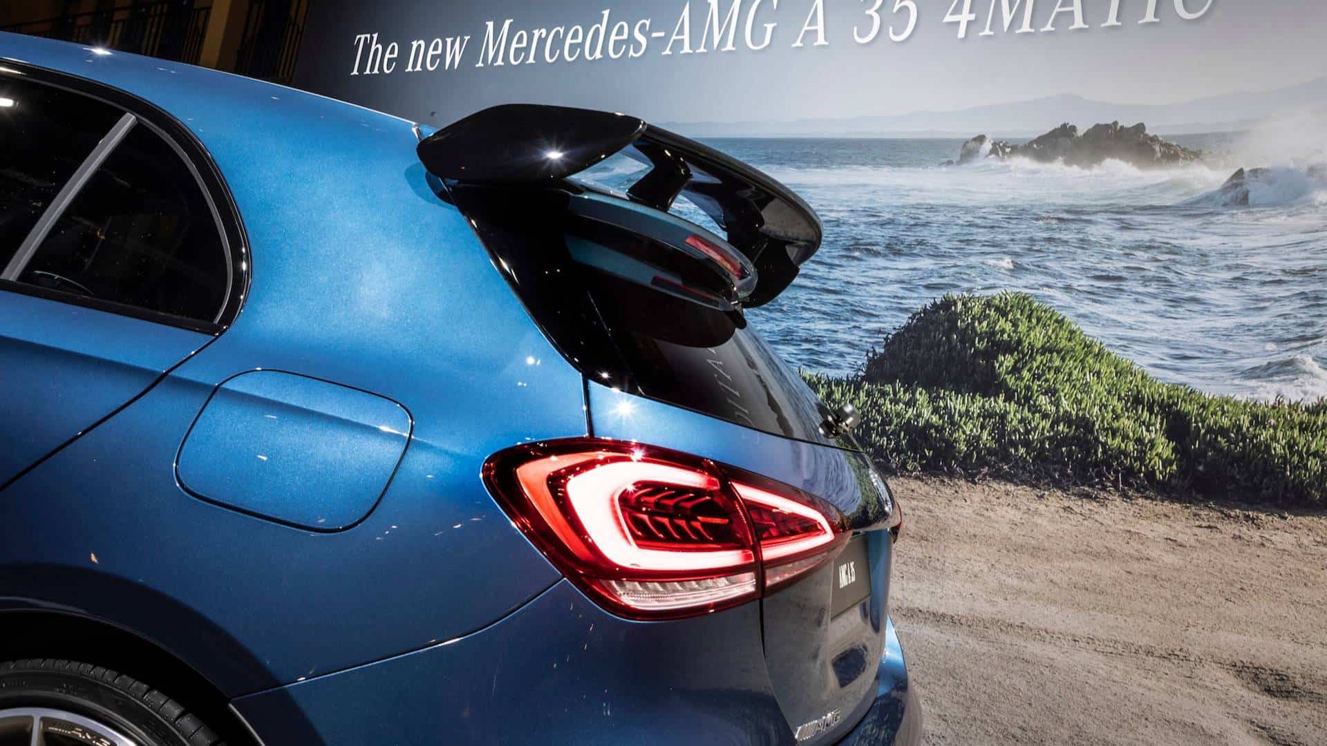 السيارات – أزاحت مرسيدس الستار بصورة رسمية عن سيارتها AMG A35 في معرض باريس الدولي للسيارات 2018 والتي ظهرت منذ أسبوعين على الانترنت قبل عرضها الأول في باريس, وتعتبر سيارة هاتشباك مثيرة بخمسة أبواب أكثر شراسة من A-Class التقليدية مع واجهة أمامية شرسة مع لمسات سوداء وعجلات عالية اللمعات وجناح ضخم في الخلف ولون أزرق جريء في الطلاء الخارجي ولمسات رمادية خاصة .