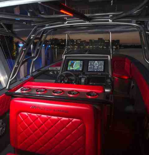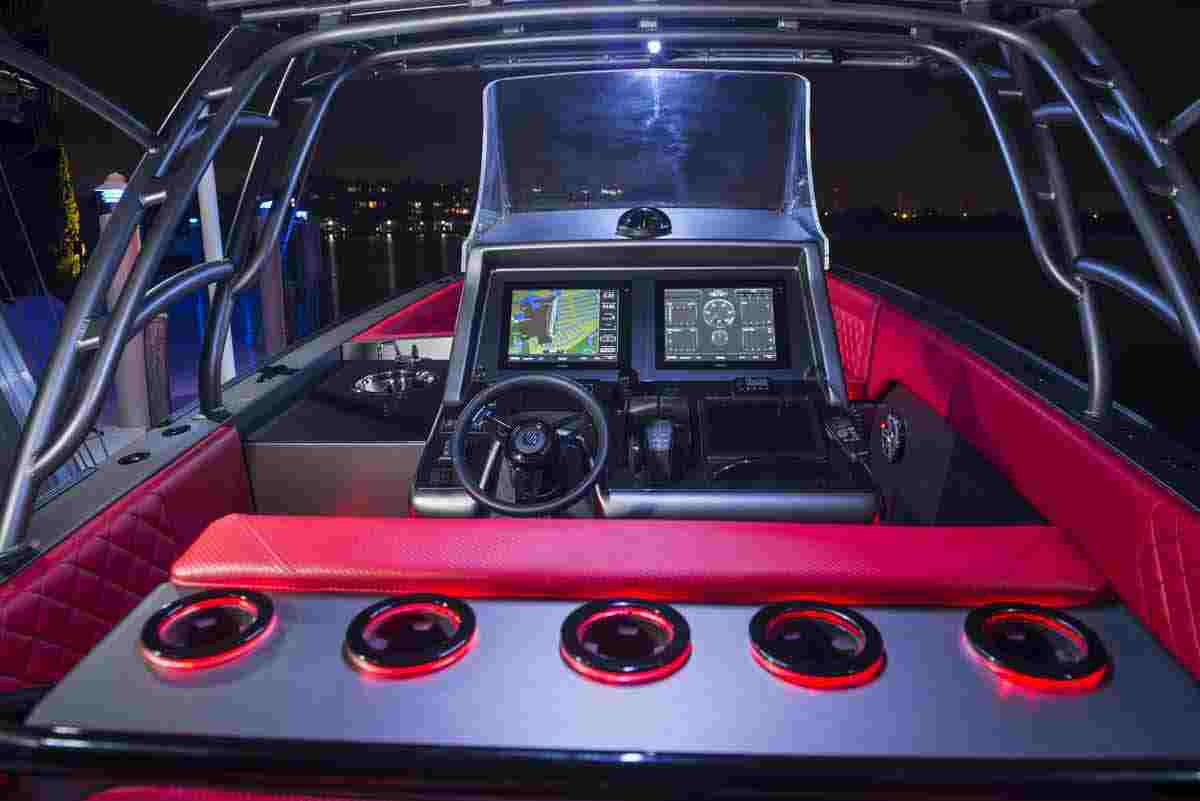 ويتميز القارب المصنع بشكل خاص بطلاء مطفي جريجيو تيتانز مع تطريز ماسي للجلد الأحمر الذي يغطي مقصورة القارب الفاخرة. أما الكونسول فيأتي بلمسات من ألياف الكربون ، تشبه تلك الموجودة في سيارة أفنتادور المكشوفة. كما زود القارب بسماعات JBL لتعطي المسافرين في القارب جودة صوتية عالية ونقاء كبير . أما من يريد شراء القارب وحده ، فسيكون عليه دفع مبلغ 498.950 دولار.