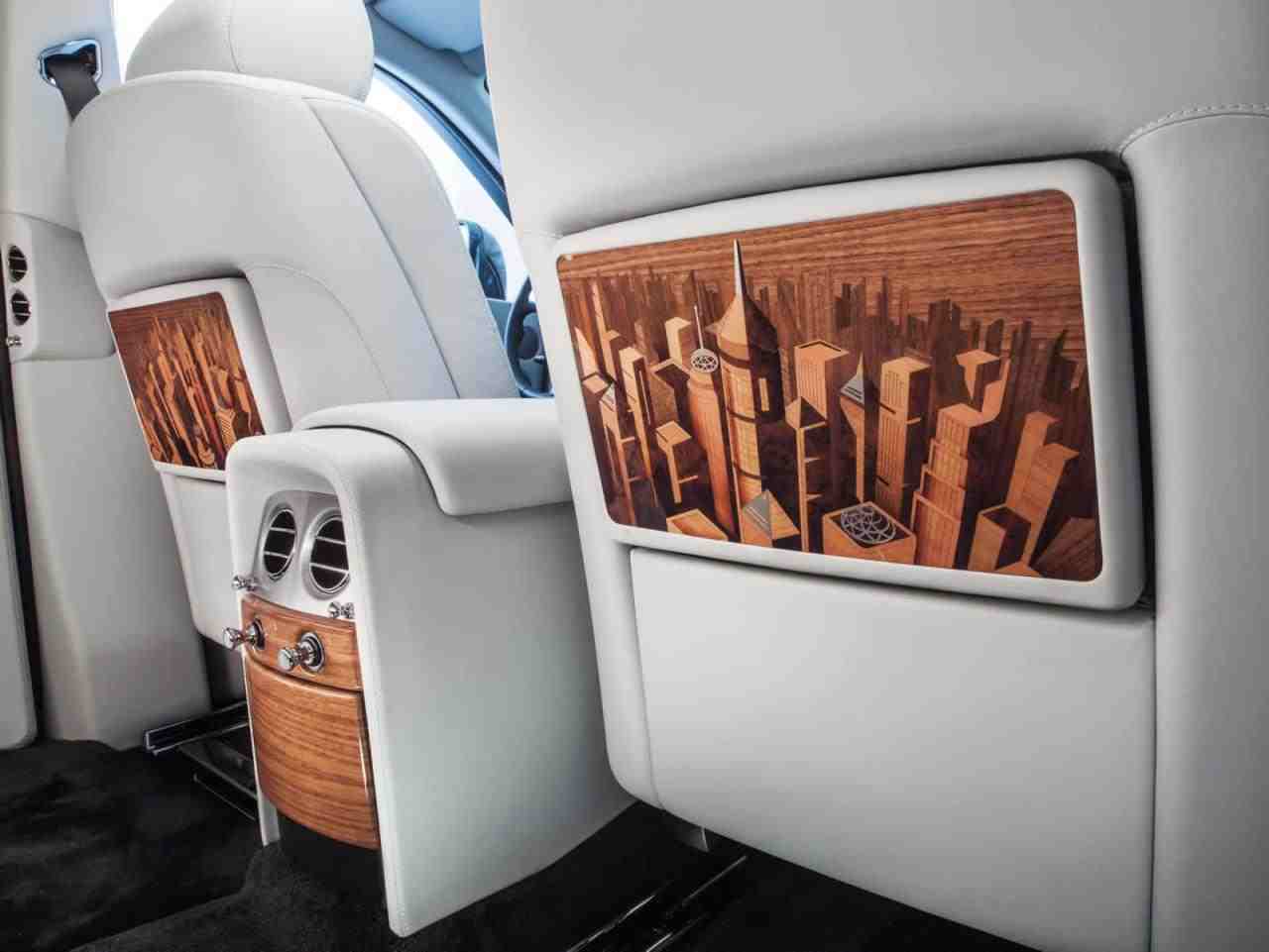 وتوجد في السيارة ما لا يقل عن 500 قطعة قشرة خشبية تظهر بعض أشكال البنايات الضخمة في المدن. بجانب وجود جلود رمادية مع أكثر من 6800 غرزة تطريز مزدوجة علي المقاعد . وتأتي السيارة في الخارج بطلاء تانجستين قاتم مع صور ظلية لناطحات السحاب في العالم.