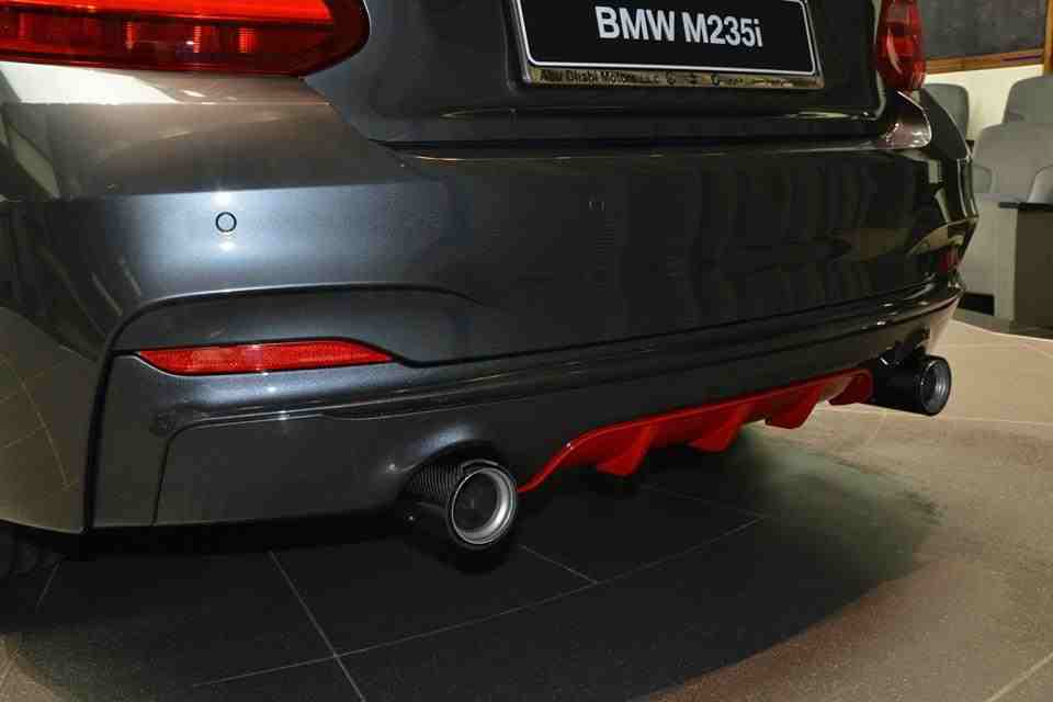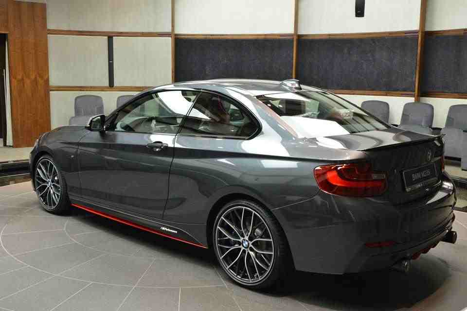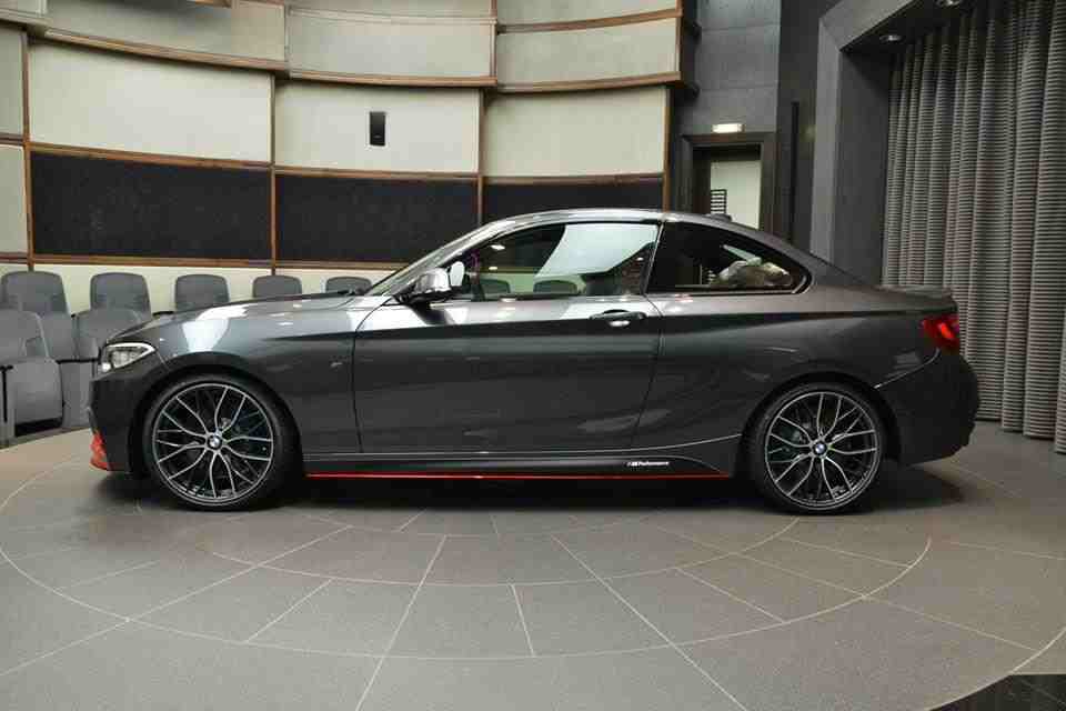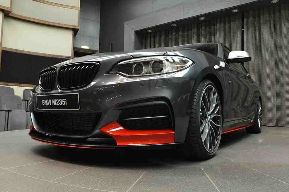 السيارات – تعرض حالياً لدي BMW أبوظبي نسخة BMW M235i مزودة ومجهزة بأجزاء M Performance ، فيما تمكن فريق العمل في أبوظبي BMW من تحويل شكل السيارة الرياضية بالكامل فقط باستخدام أجزاء M المطلية باللون الأحمر. وتتميز السيارة الرمادية المعدنية اللون بمشتت جديد ومشتت خلفي باللون الأحمر جزئياً بجانب شبكة تهوية سوداء من M وعتبات M الجانبية بلمسات حمراء عليها.