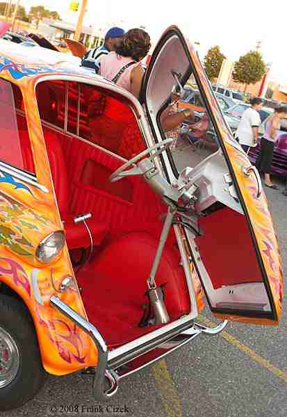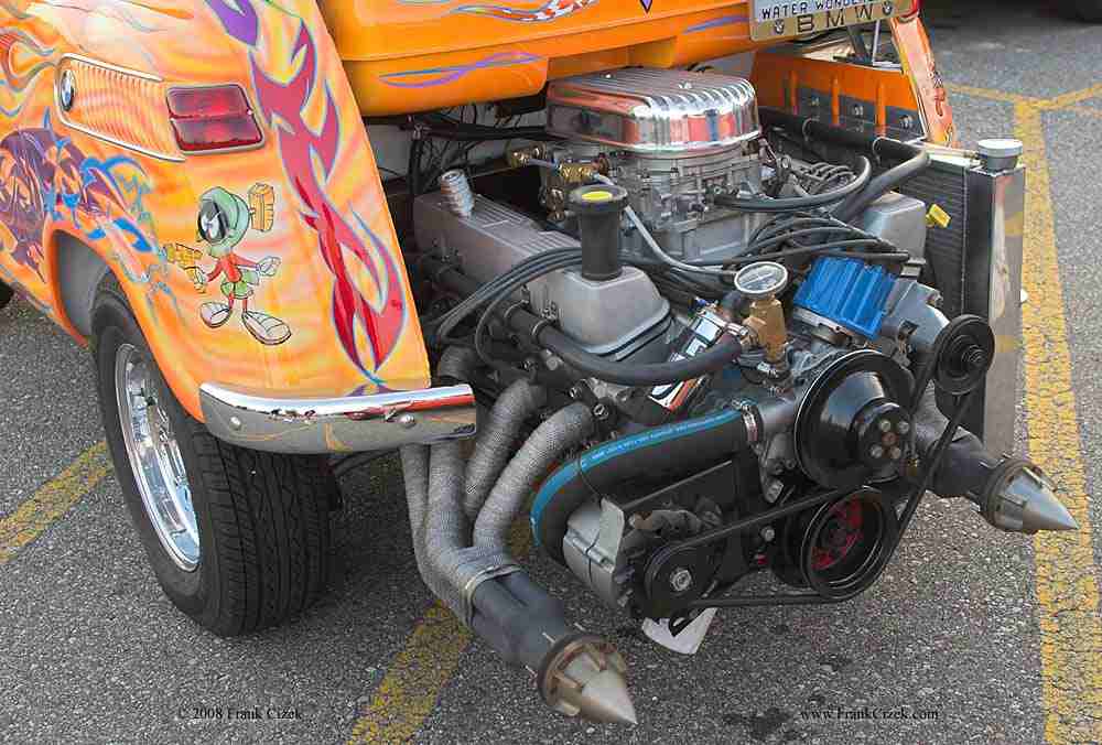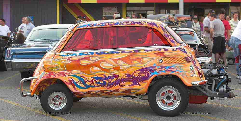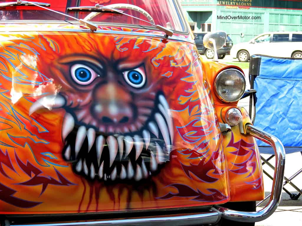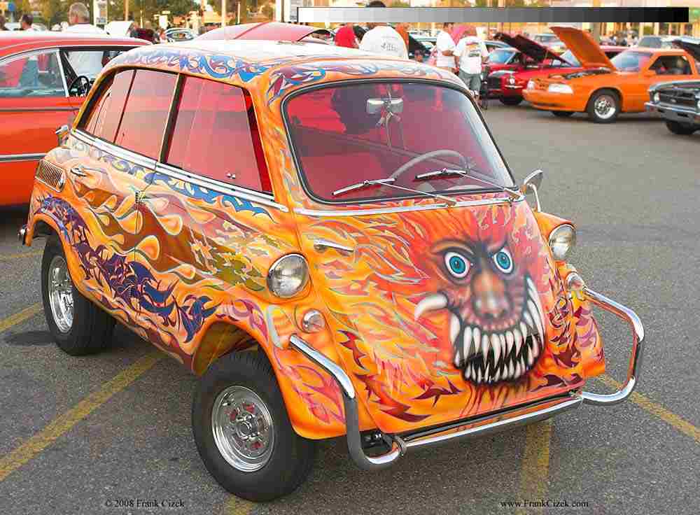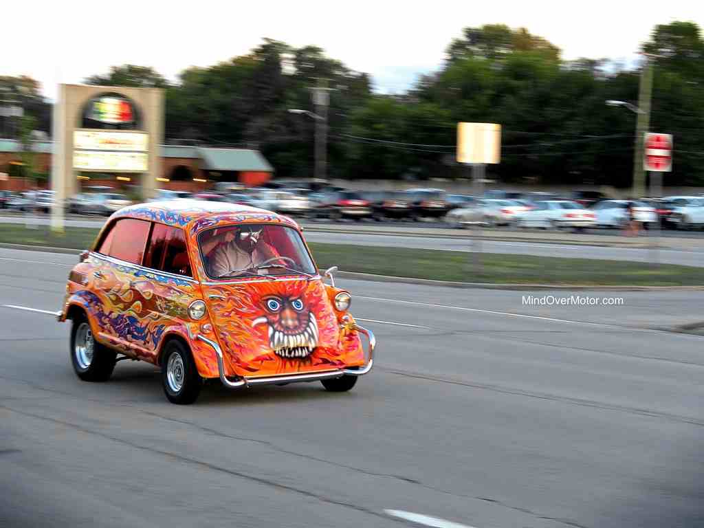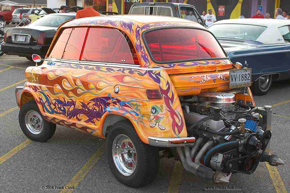 السيارات – في البداية يجب القول أن هذه السيارة من طراز BMW Isetta 600 تملك محرك V8 ، ولكنه لا يوجد تحت أي نوع معروف من أغطية المحركات التقليدية . وهذا لأن مالك السيارة أراد تمييز السيارة بموضة الشاحن الفائق V8 القديمة ، وبالتالي بدأ العمل علي السيارة لتتحول للصورة التي ترونها عليها الآن. وقد زودت السيارة بمحرك CID سعة 4.6 لتر من روفر 75 مع شاحن فائق ، وهو ما يولد قوة 300 حصان ترسل للعجلات الخلفية مع تزود السيارة بناقل حركة Corvair من 4 سرعات. وقد استغرق العمل علي تطوير هذه السيارة 4 أشهر .