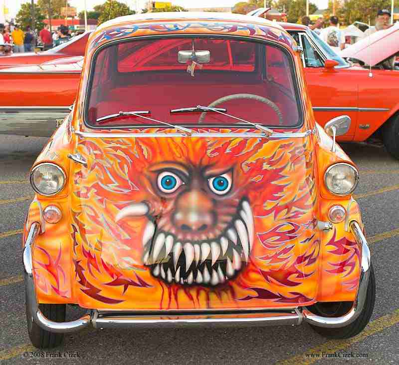 ولكن لسوء الحظ ، فإن وزن السيارة التي ترجع لعام 1958 جعل المحرك لا يعمل كما ينبغي ، لأن كل ضغطة علي المكابح قد تدفع للقيام بحركة بهلوانية غير مرحب بها هنا أو تحطيم المحرك . ولهذا السبب قام مالك السيارة بأخذها في جولات حول المدينة بالاعتماد علي الانطلاق علي السرعات البطيئة من أجل استعراض محركها المثير وطلائها المميز. وتحمل السيارة وجه شيطاني في الأمام وبعض ألسنة اللهب علي جسمها .