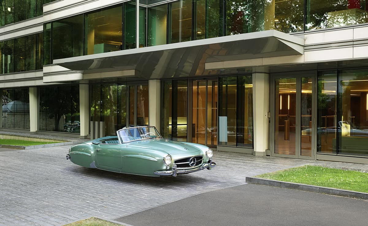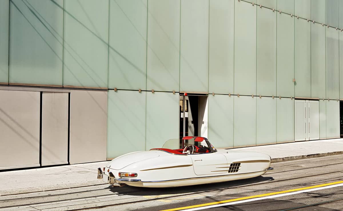 والصور التي نراها هنا ، والتي تبدو جميلة للغاية تأتي عبر المصور والفنان الفرنسي رينو ماريون البالغ من العمر 39 عاماً والذي وضح الهدف من هذه الصور التخيلية بقوله : ” عندما كنت طفلاً تخيلت أن الألفية الجديدة ستكون فيها السيارات تطير ولا تتحرك علي الأرض بجانب انتشار سفن الفضاء والعوالم الموازية ، وقد تخيلت الكثير من الأحلام التي يراها الأطفال والتي يأملون في تحولها لواقع في المستقبل. وقد التقطت تلك الصور في باريس وجنيف للسيارات ، قبل أن يتم تعديلها عبر التصميمات الرقمية . والصور كما نراها تتحدث عن نفسها وإذا كنتم تعتقدون أن 300SL المكشوفة تبدو رائعة في حلة المركبة الطائرة ، فإن موديل E-Type يبدو رائعاً بدوره.