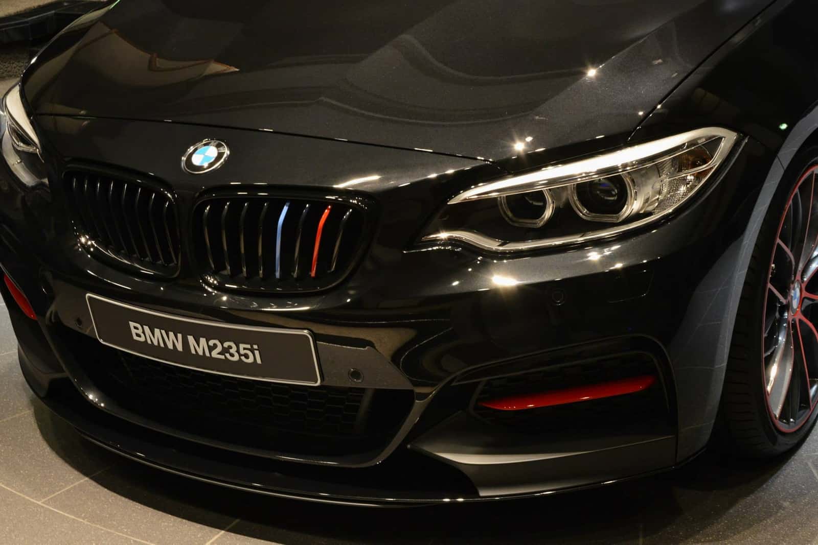 السيارات – هذه هي الطريقة المثالية التي يمكن أن تبدو بها سيارتك الجديدة BMW M235i بعد أن تتزين بمختلف القطع والمكونات التي توفرها M Performance . ولا تخفي علينا ملامح هذه المكونات الإضافية علي السيارة التي تبدو لمساتها في كل مكان علي سطح السيارة الخارجي. وكما نري ، فقد حصلت عجلات السيارة علي لمسات خاصة وكذلك شبكة التهوية التي حصلت علي ألوان M المميزة وكذلك الصادم الأمامي.